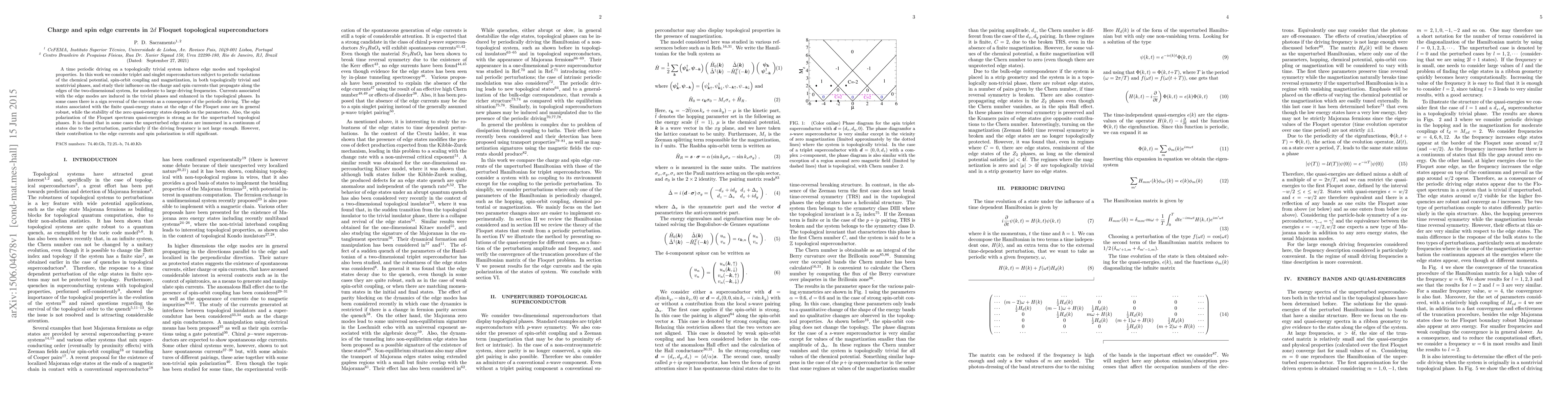 A time periodic driving on a topologically trivial system induces edge modes and topological properties. In this work we consider triplet and singlet superconductors subject to periodic variations of the chemical potential, spin-orbit coupling and magnetization, in both topologically trivial and nontrivial phases, and study their influence on the charge and spin currents that propagate along the edges of the two-dimensional system, for moderate to large driving frequencies. Currents associated with the edge modes are induced in the trivial phases and enhanced in the topological phases. In some cases there is a sign reversal of the currents as a consequence of the periodic driving. The edge states associated with the finite quasi-energy states at the edge of the Floquet zone are in general robust, while the stability of the zero quasi-energy states depends on the parameters. Also, the spin polarization of the Floquet spectrum quasi-energies is strong as for the unperturbed topological phases. It is found that in some cases the unperturbed edge states are immersed in a continuum of states due to the perturbation, particularly if the driving frequency is not large enough. However, their contribution to the edge currents and spin polarization is still significant.