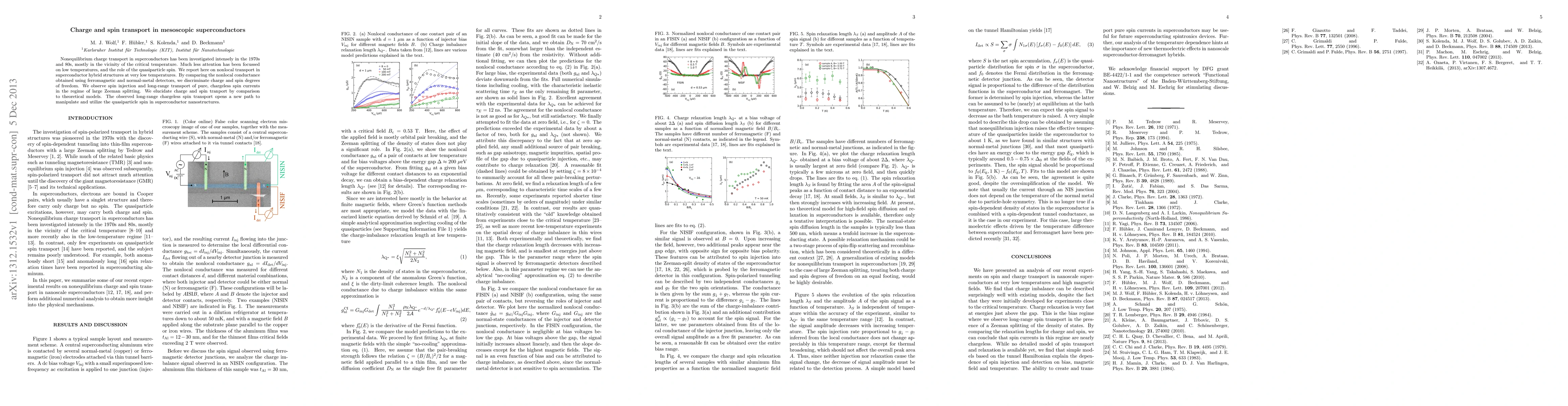 This research investigates nonequilibrium charge transport in superconductor hybrid structures at low temperatures, focusing on quasiparticle spin. It reveals long-range transport of chargeless spin currents, distinguishing between charge and spin degrees of freedom, and suggests new methods for manipulating quasiparticle spin in superconductor nanostructures.