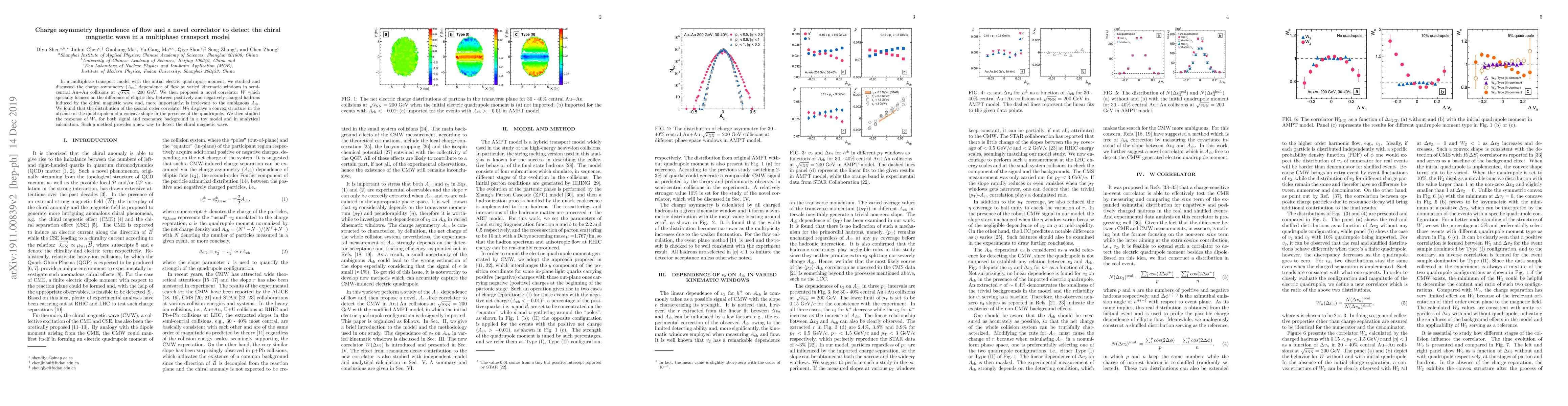 In a multiphase transport model with the initial electric quadrupole moment, we studied and discussed the charge asymmetry ($A_{\rm ch}$) dependence of flow at varied kinematic windows in semi-central Au+Au collisions at $\sqrt{s_{\rm NN}}$ = 200 GeV. We then proposed a novel correlator $W$ which specially focuses on the difference of elliptic flow between positively and negatively charged hadrons induced by the chiral magnetic wave and, more importantly, is irrelevant to the ambiguous $A_{\rm ch}$. We found that the distribution of the second order correlator $W_2$ displays a convex structure in the absence of the quadrupole and a concave shape in the presence of the quadrupole. We also studied the response of $W_n$ for both signal and resonance background in a toy model and in analytical calculation. Such a method provides a new way to detect the chiral magnetic wave.