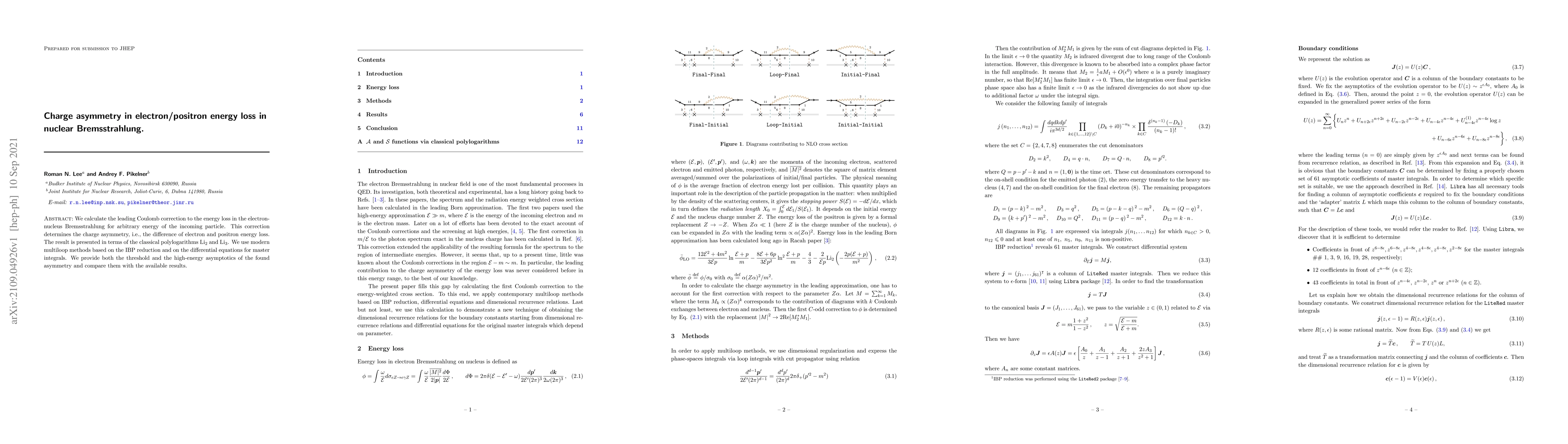 This research paper calculates the charge asymmetry in electron/positron energy loss during nuclear Bremsstrahlung, revealing a difference determined by classical polylogarithms and providing threshold and high-energy asymptotics.