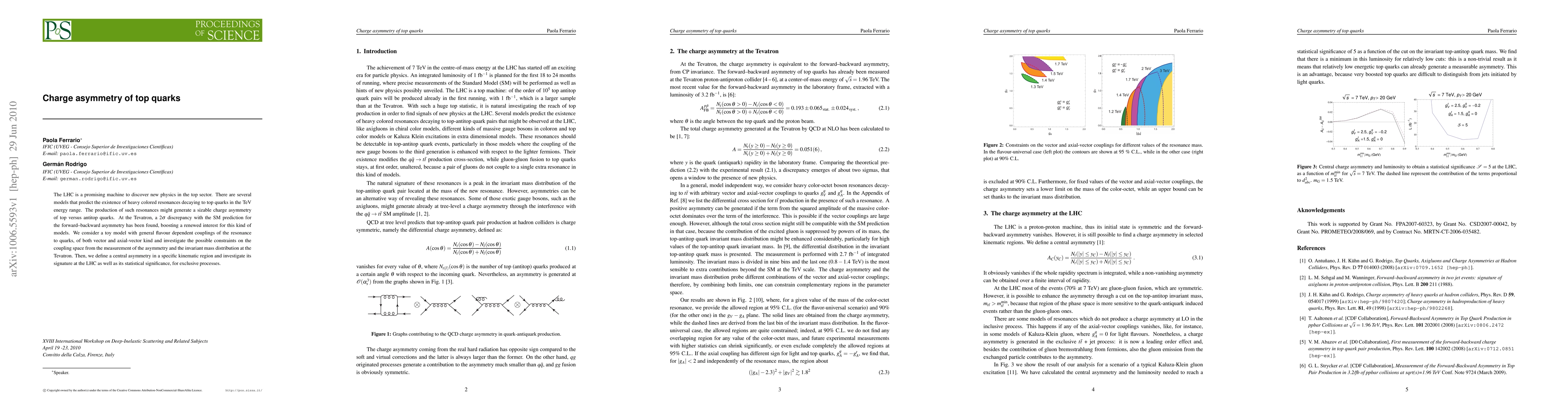 This paper explores the potential for discovering new physics in the top quark sector via charge asymmetry at the LHC, focusing on models predicting heavy colored resonances. It investigates constraints from Tevatron measurements and assesses the signature and statistical significance of a central asymmetry in exclusive processes at the LHC.