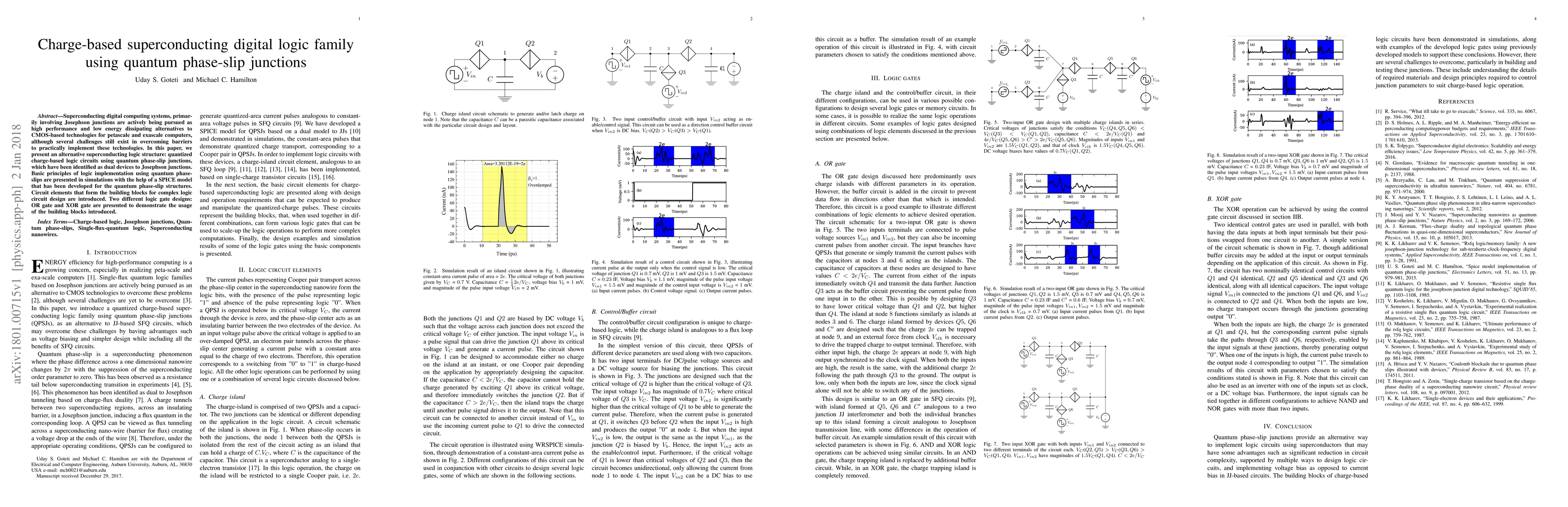 This paper proposes a charge-based superconducting logic family using quantum phase-slip junctions as an alternative to Josephson junction-based systems. It demonstrates the implementation of basic logic gates, such as OR and XOR, using a developed SPICE model for quantum phase-slip structures.