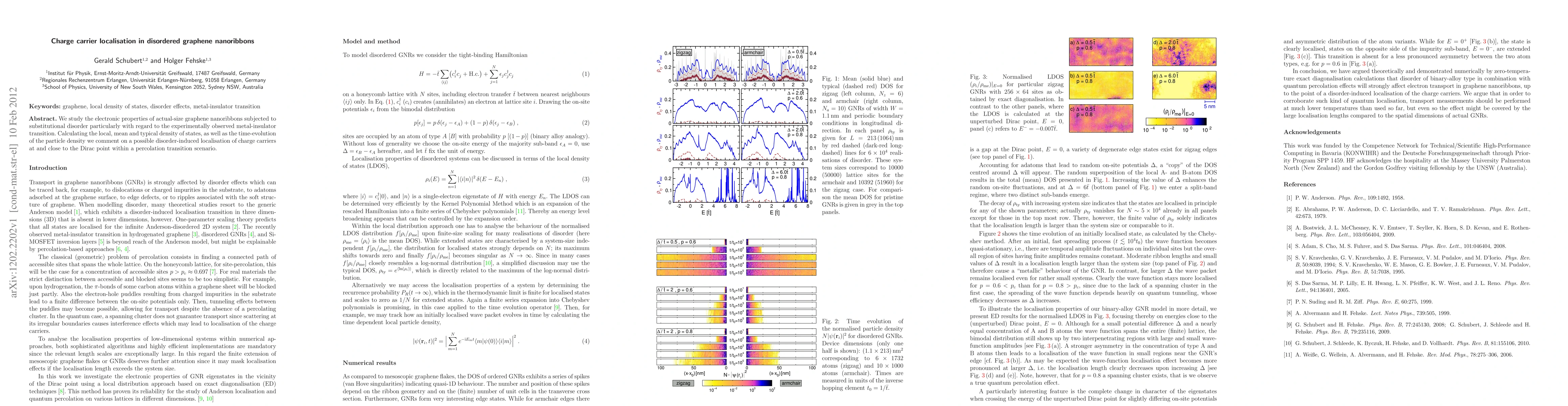 We study the electronic properties of actual-size graphene nanoribbons subjected to substitutional disorder particularly with regard to the experimentally observed metal-insulator transition. Calculating the local, mean and typical density of states, as well as the time-evolution of the particle density we comment on a possible disorder-induced localisation of charge carriers at and close to the Dirac point within a percolation transition scenario.