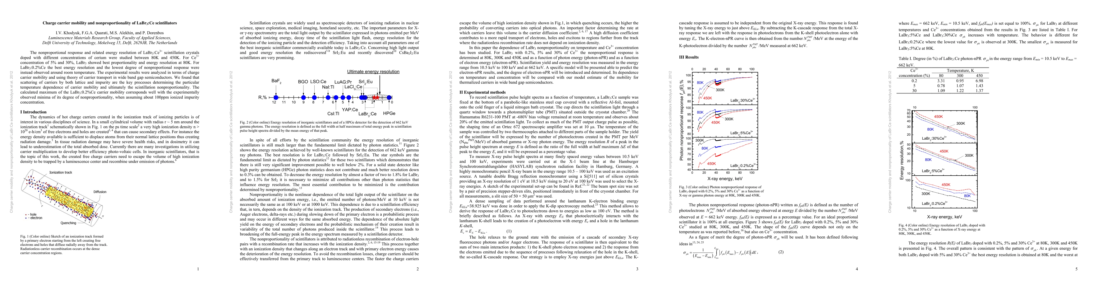 Researchers studied LaBr$_3$:Ce scintillators to understand how temperature affects their energy resolution and charge carrier mobility, finding that certain concentrations of cerium can optimize these properties at different temperatures.