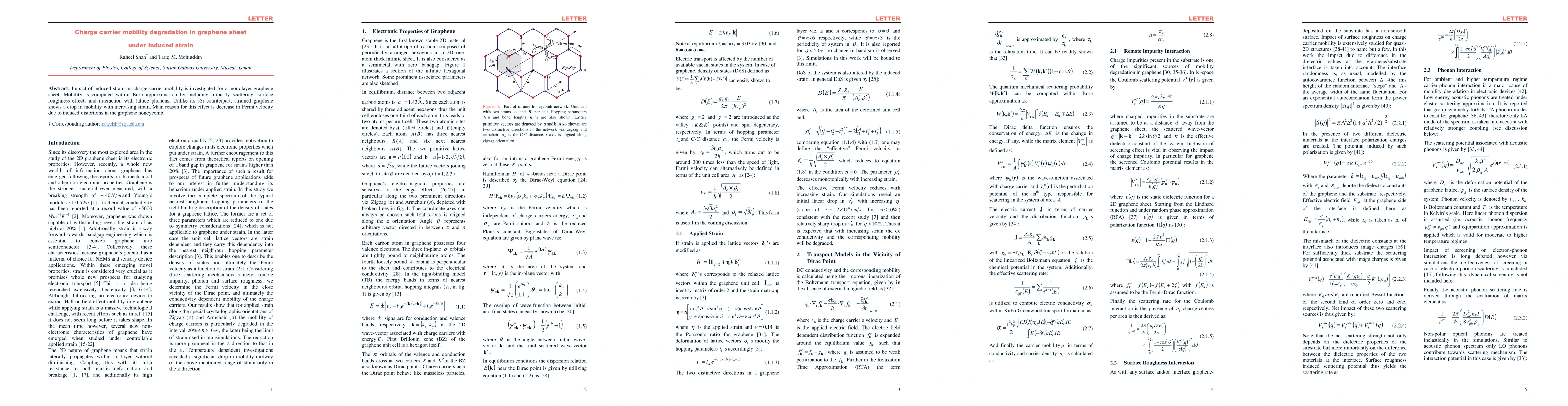 Summary: Research explores how induced strain reduces charge carrier mobility in graphene, revealing a decline in mobility with increased strain due to reduced Fermi velocity from lattice distortions, contrasting with the behavior in strained silicon.