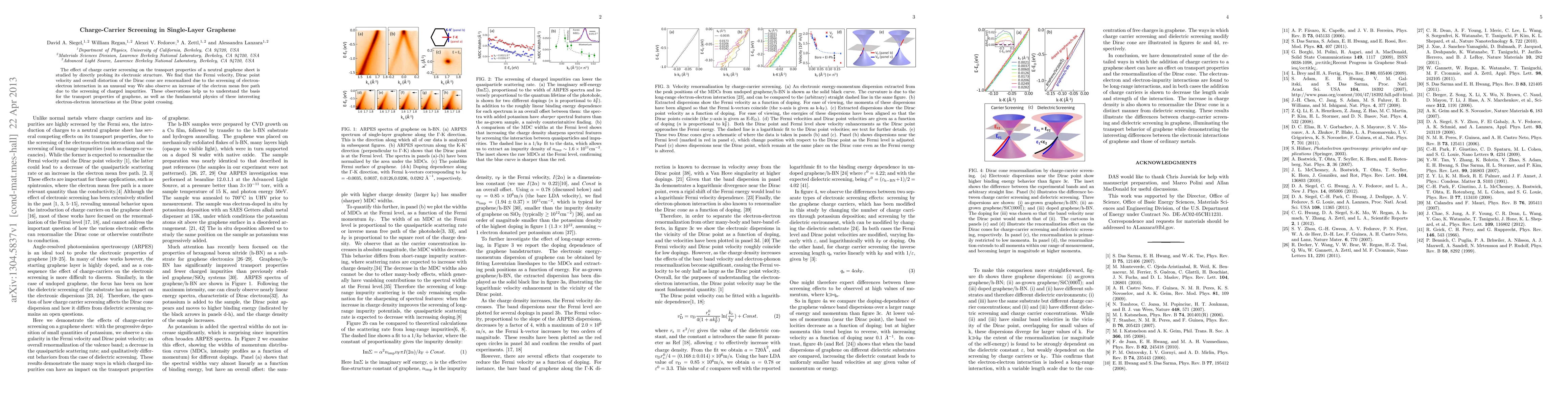 This paper investigates how charge-carrier screening affects the transport properties in single-layer graphene, revealing renormalization of the Fermi velocity and distortion of the Dirac cone due to electron-electron interactions. The study also observes an increase in electron mean free path from impurity screening, contributing to a deeper understanding of graphene's transport behavior.