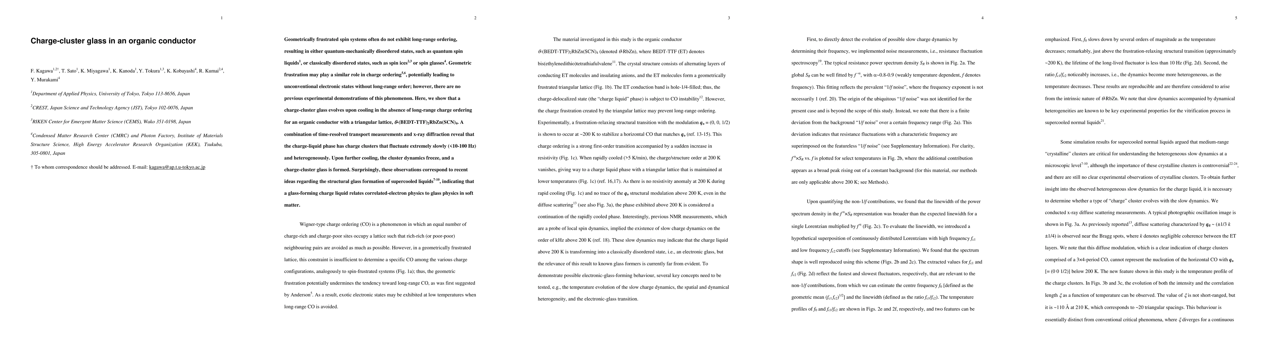 This study demonstrates the emergence of a charge-cluster glass in an organic conductor with a triangular lattice, showing that charge ordering can exhibit geometric frustration similar to spin systems. Experimental findings reveal slow, heterogeneous charge cluster dynamics that freeze upon cooling, linking correlated-electron physics to structural glass formation in soft matter.