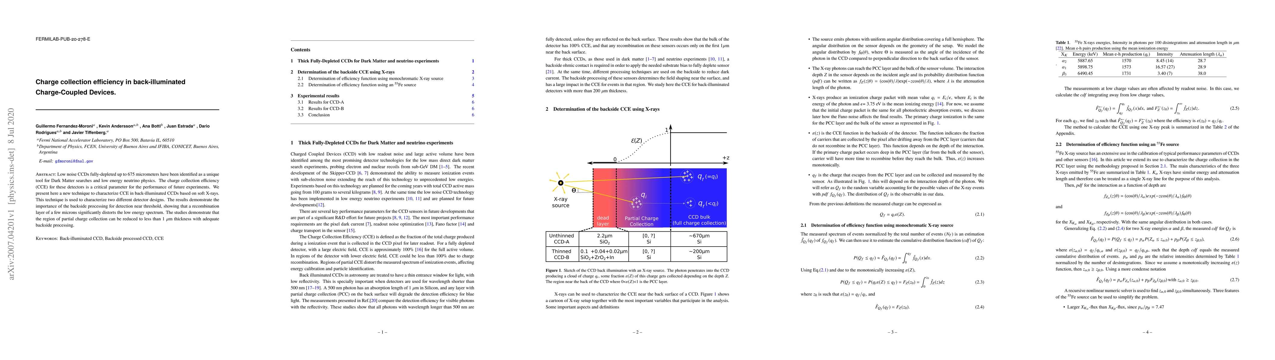 Low noise CCDs fully-depleted up to 675 micrometers have been identified as a unique tool for Dark Matter searches and low energy neutrino physics. The charge collection efficiency (CCE) for these detectors is a critical parameter for the performance of future experiments. We present here a new technique to characterize CCE in back-illuminated CCDs based on soft X-rays. This technique is used to characterize two different detector designs. The results demonstrate the importance of the backside processing for detection near threshold, showing that a recombination layer of a few microns significantly distorts the low energy spectrum. The studies demonstrate that the region of partial charge collection can be reduced to less than 1 micrometer thickness with adequate backside processing.