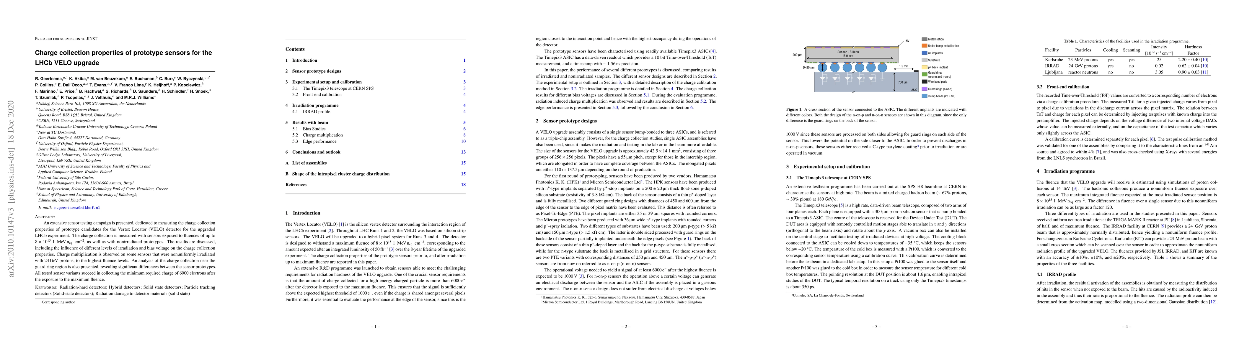 This paper tests charge collection properties of LHCb VELO sensor prototypes exposed to high radiation levels and finds that some sensors exhibit charge multiplication and significant differences in performance near the guard ring region.
