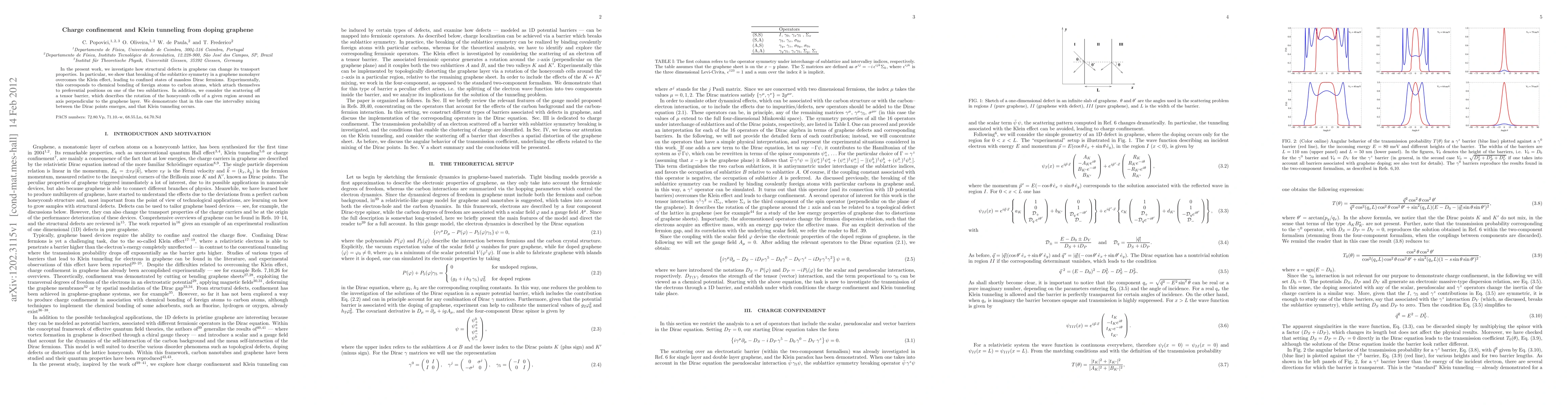 This paper explores how structural defects in graphene, such as chemical doping and tensor barriers, alter its transport properties by breaking sublattice symmetry, leading to confined states and Klein tunneling. Experimentally, this involves foreign atoms bonding to graphene's carbon atoms, creating intervalley mixing and facilitating Klein tunneling.