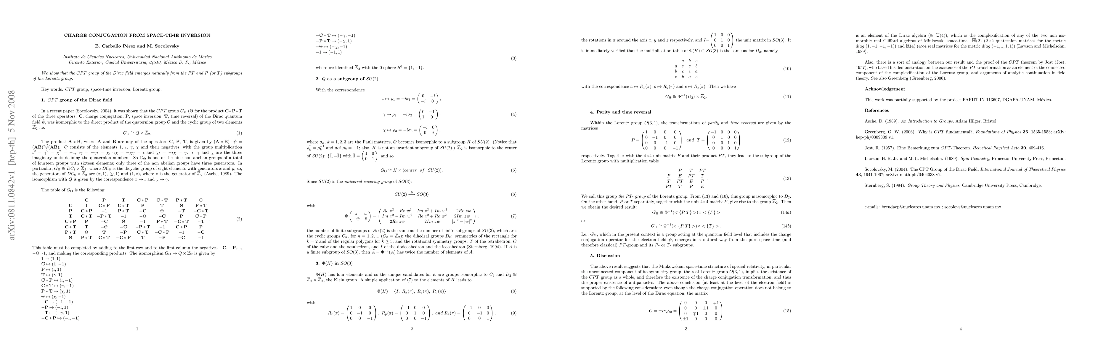 We show that the CPT group of the Dirac field emerges naturally from the PT and P (or T) subgroups of the Lorentz group.