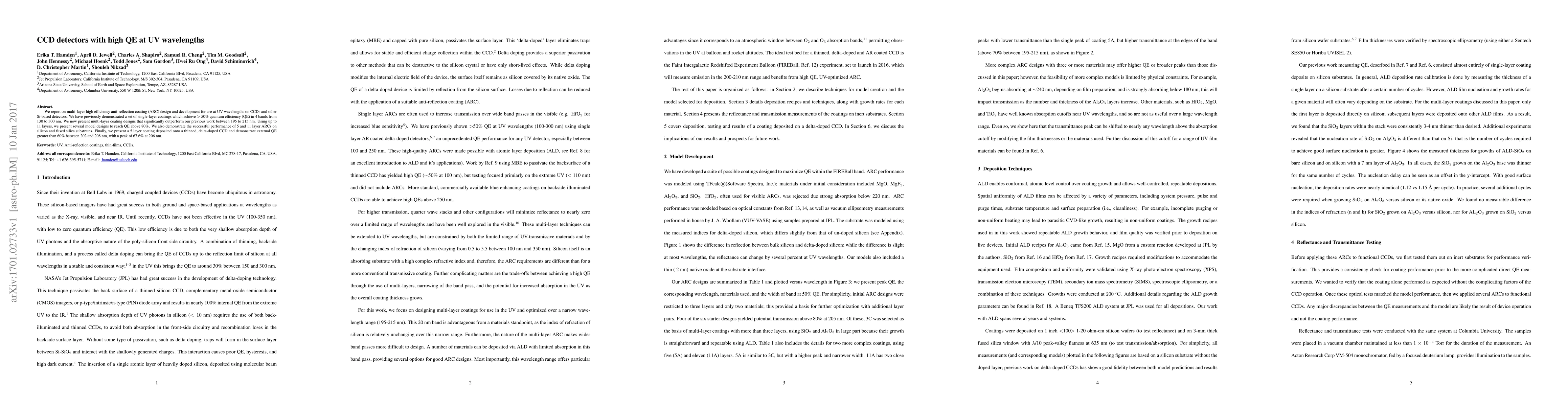 This paper reports on the development of multilayer antireflection coatings (ARC) to enhance the quantum efficiency of CCD detectors at UV wavelengths, achieving up to 80% efficiency in the 195-215 nm range. The study also demonstrates successful implementation of these coatings on silicon and fused silica substrates, and a five-layer ARC on a thinned, delta-doped CCD, achieving over 60% external quantum efficiency between 202 and 208 nm.