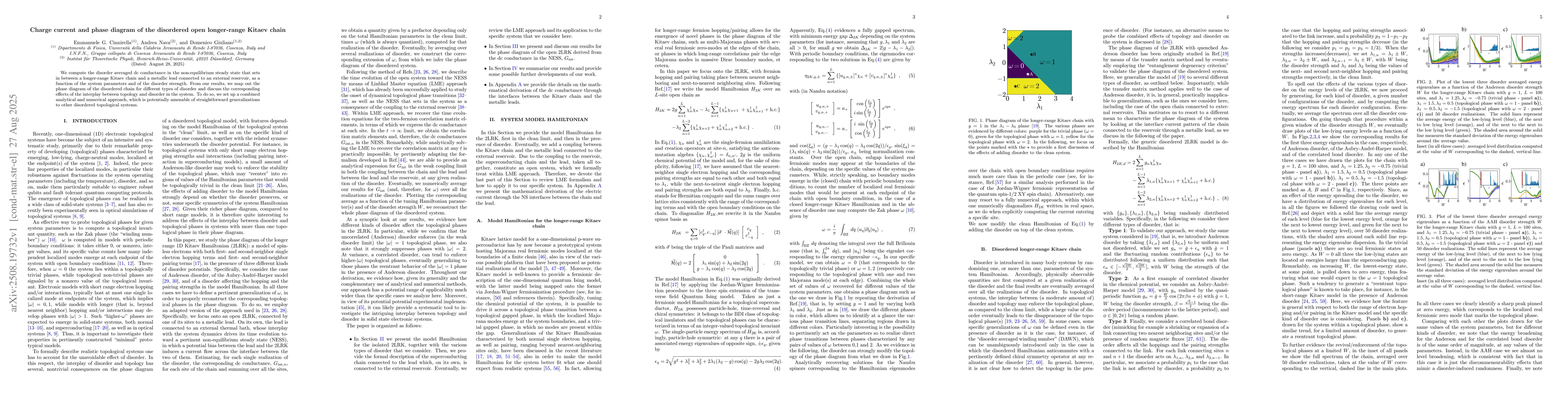 We compute the disorder averaged dc conductance in the non-equilibrium steady state that sets in between a longer-range Kitaev chain and a metallic lead connected to an external reservoir, as a function of the system parameters and of the disorder strength. From our results, we map out the phase diagram of the disordered chain for different types of disorder and discuss the corresponding effects of the interplay between topology and disorder in the system. To do so, we set up a combined analytical and numerical approach, which is potentially amenable of straightforward generalizations to other disordered topological systems.