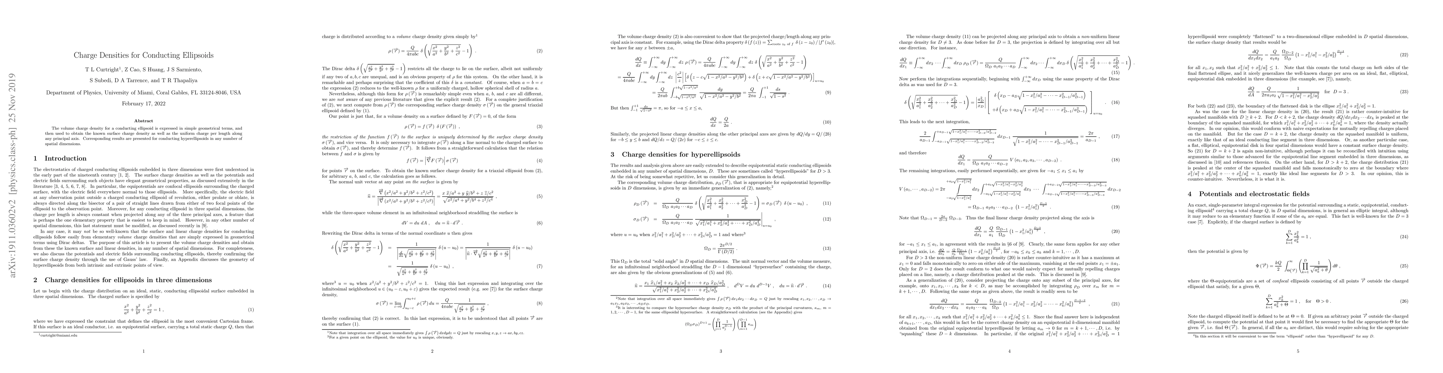 The volume charge density for a conducting ellipsoid is expressed in simple geometrical terms, and then used to obtain the known surface charge density as well as the uniform charge per length along any principal axis. Corresponding results are presented for conducting hyperellipsoids in any number of spatial dimensions.