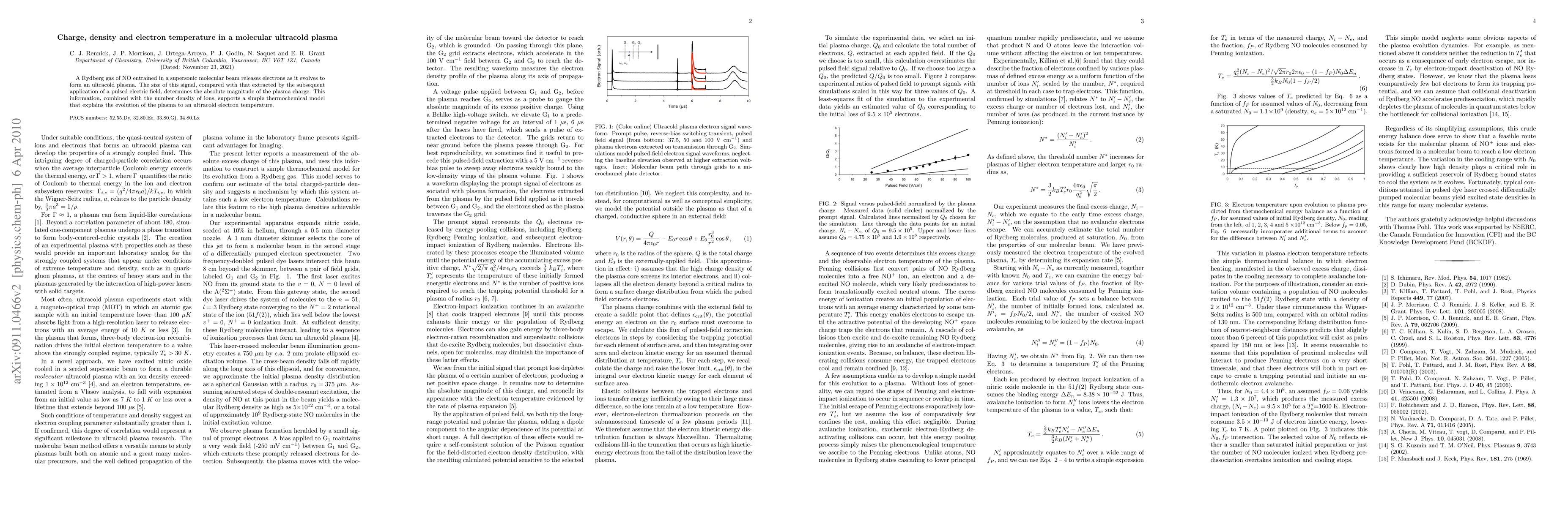 This study investigates the formation of an ultracold plasma from a Rydberg gas of NO in a supersonic molecular beam, determining the plasma charge and electron temperature through thermochemical modeling based on ion density and electric field effects. The findings elucidate the plasma's evolution to achieve ultracold electron temperatures.