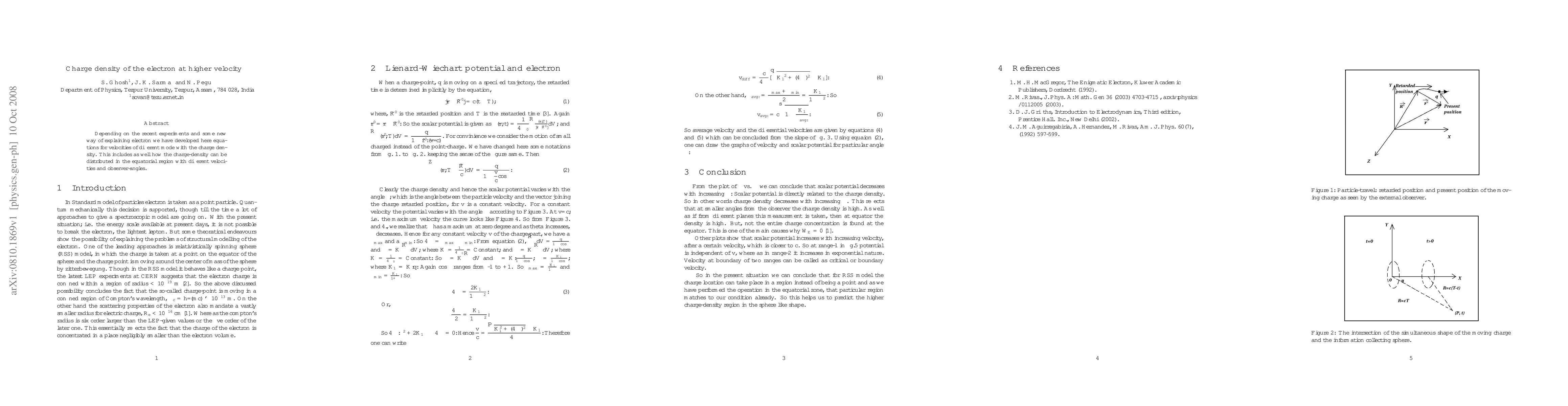 Depending on the recent experiments and some new way of explaining electron we have developed here equations for velocities of different mode with the charge density. This includes as well how the charge-density can be distributed in the equatorial region with different velocities and observer-angles.