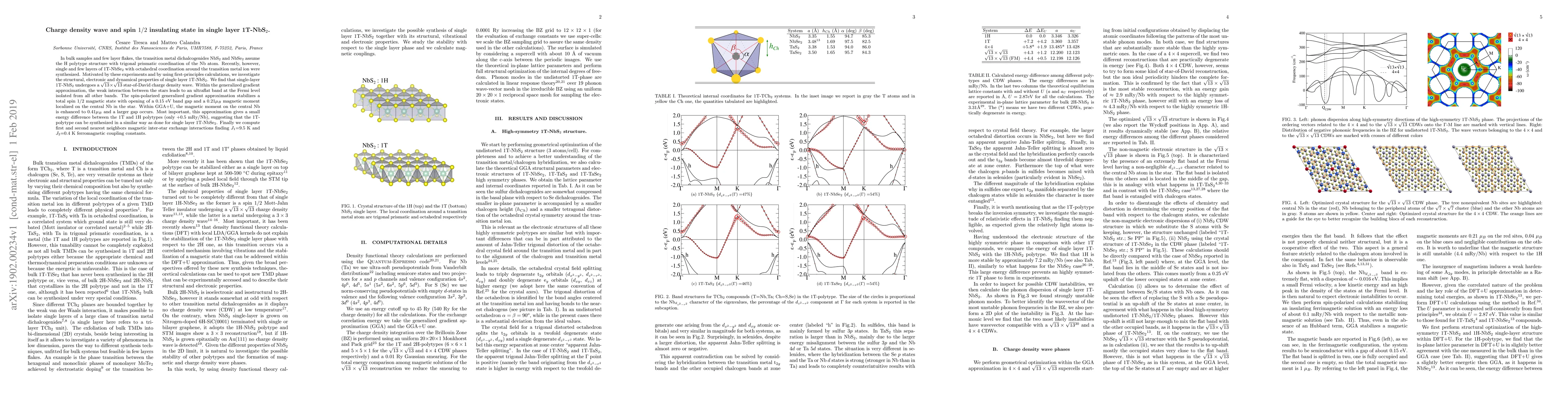 Single layer 1T-NbS2 undergoes a charge density wave with an ultraflat band at the Fermi level, exhibiting a spin 1/2 magnetic state with a small energy gap.