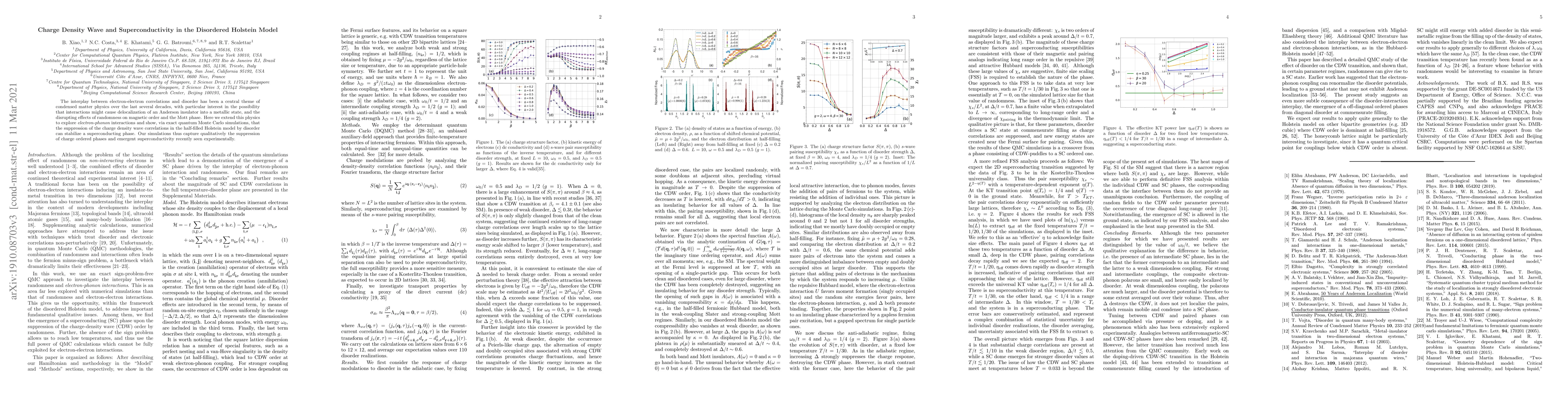 The study investigates how electron-phonon interactions in the disordered Holstein model can suppress charge density wave correlations, leading to the stabilization of a superconducting phase, as demonstrated by exact quantum Monte Carlo simulations. The findings align with recent experimental observations of the suppression of charge order and the emergence of superconductivity.