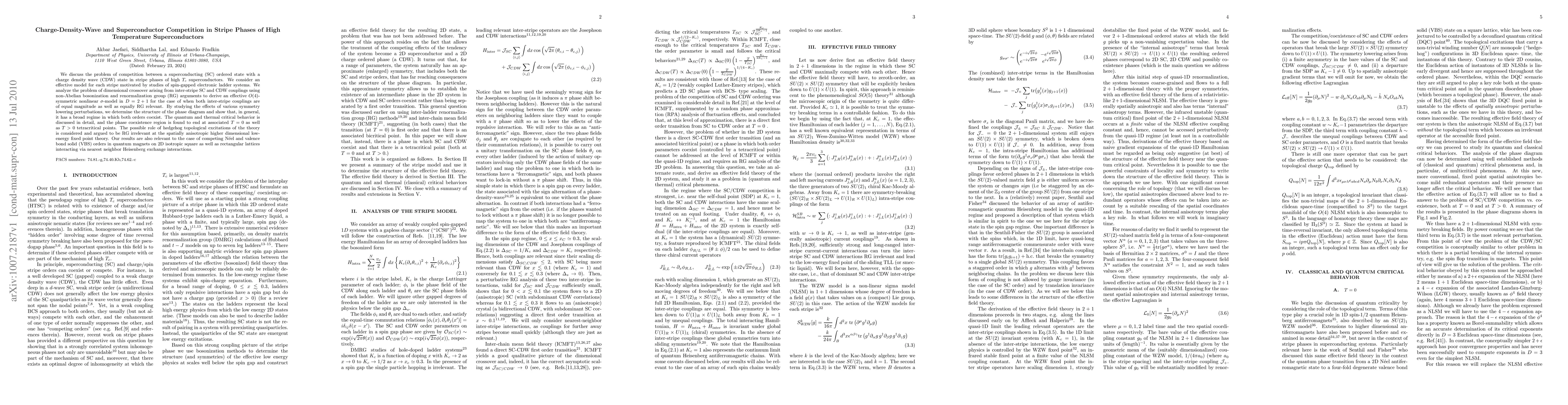 Researchers investigate competition between superconducting and charge density wave orders in high temperature superconductors using non-Abelian bosonization and renormalization group arguments, finding a broad regime where both orders coexist and phase transition points at $T=0$ and $T>0$.