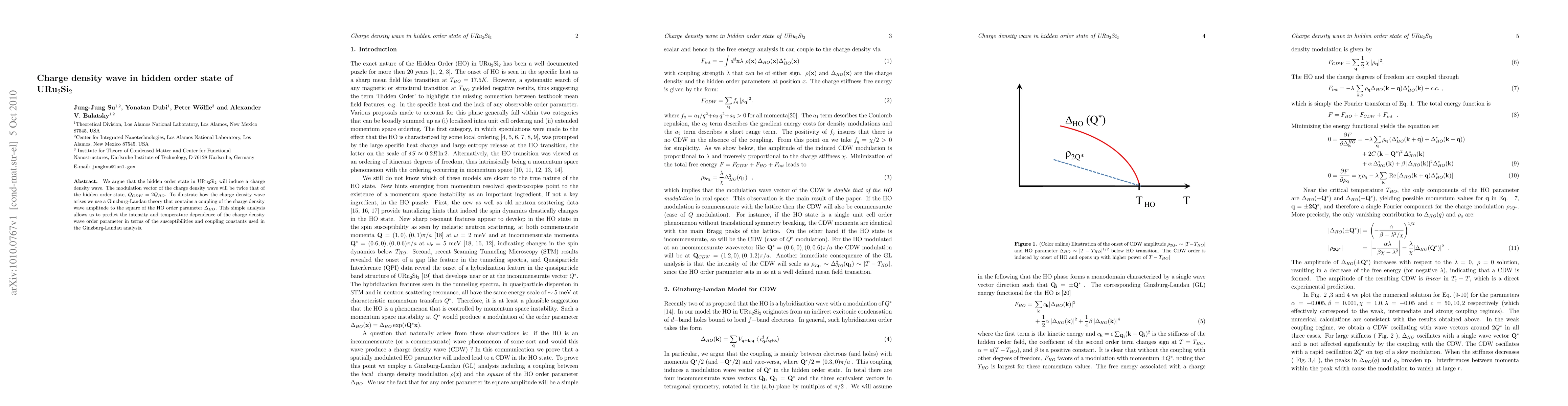 The paper introduces a Ginzburg-Landau model that couples the CDW and hidden order parameters, providing a theoretical prediction for the CDW modulation vector and intensity in terms of material properties.