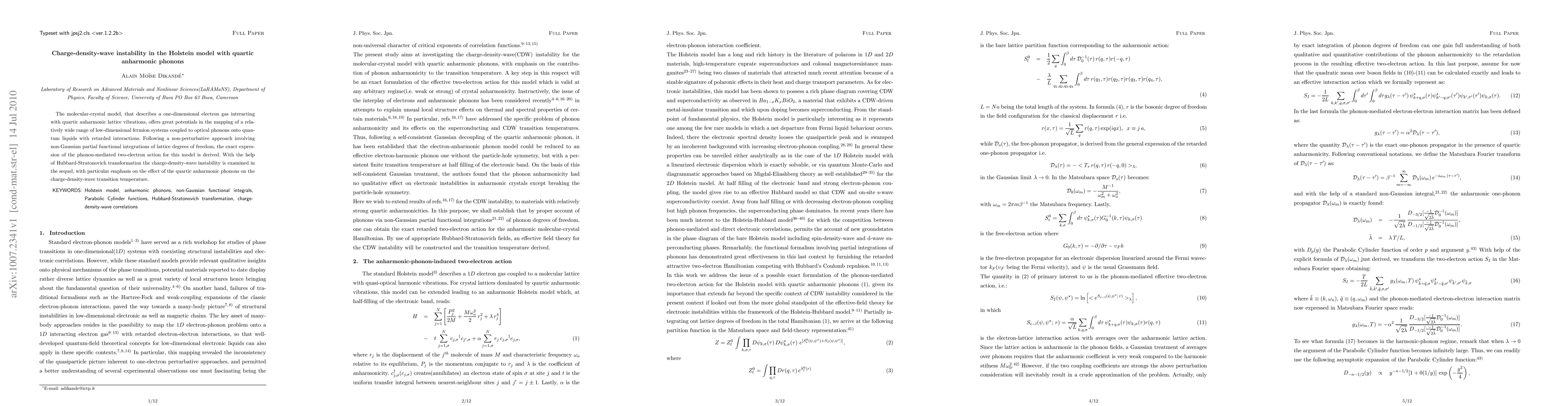 The molecular-crystal model, that describes a one-dimensional electron gas interacting with quartic anharmonic lattice vibrations, offers great potentials in the mapping of a relatively wide range of low-dimensional fermion systems coupled to optical phonons onto quantum liquids with retarded interactions. Following a non-perturbative approach involving non-Gaussian partial functional integrations of lattice degrees of freedom, the exact expression of the phonon-mediated two-electron action for this model is derived. With the help of Hubbard-Stratonovich transformation the charge-density-wave instability is examined in the sequel, with particular emphasis on the effect of the quartic anharmonic phonons on the charge-density-wave transition temperature.