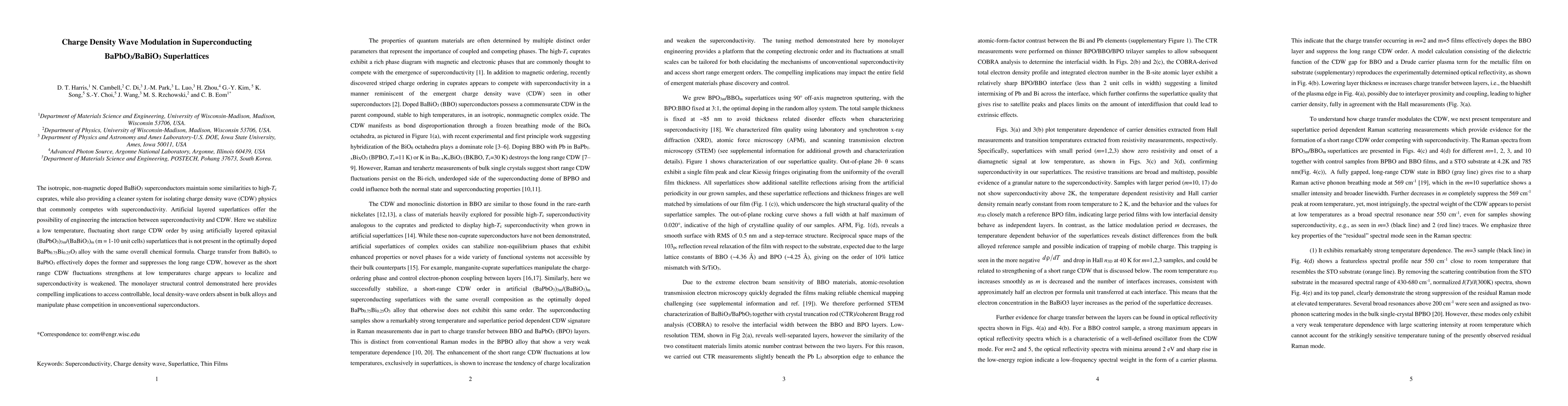Researchers created artificial layered superlattices to study charge density wave physics in a newly synthesized BaPbO$_3$/BaBiO$_3$ superconductor, finding that short-range CDW fluctuations can weaken superconductivity.