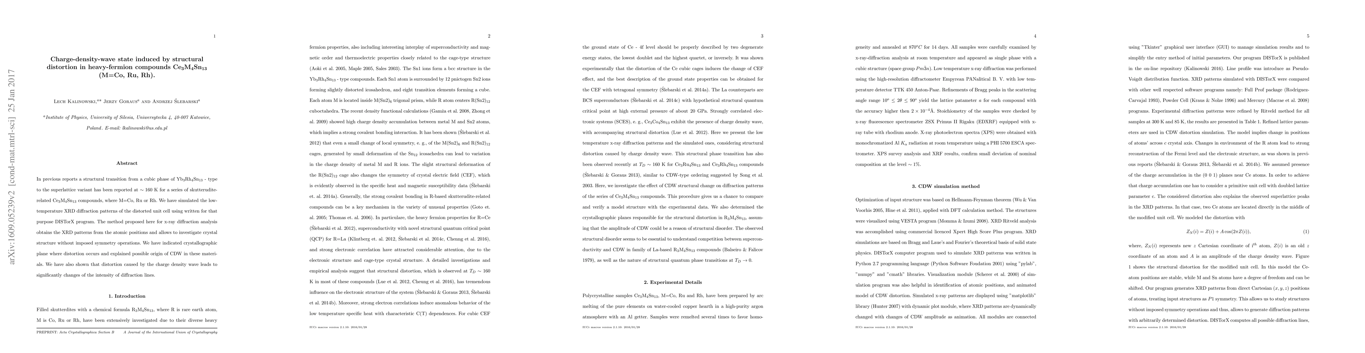 Researchers studied the structural distortion in heavy-fermion compounds Ce$_3$M$_4$Sn$_{13}$, revealing a charge-density wave state that alters diffraction patterns.