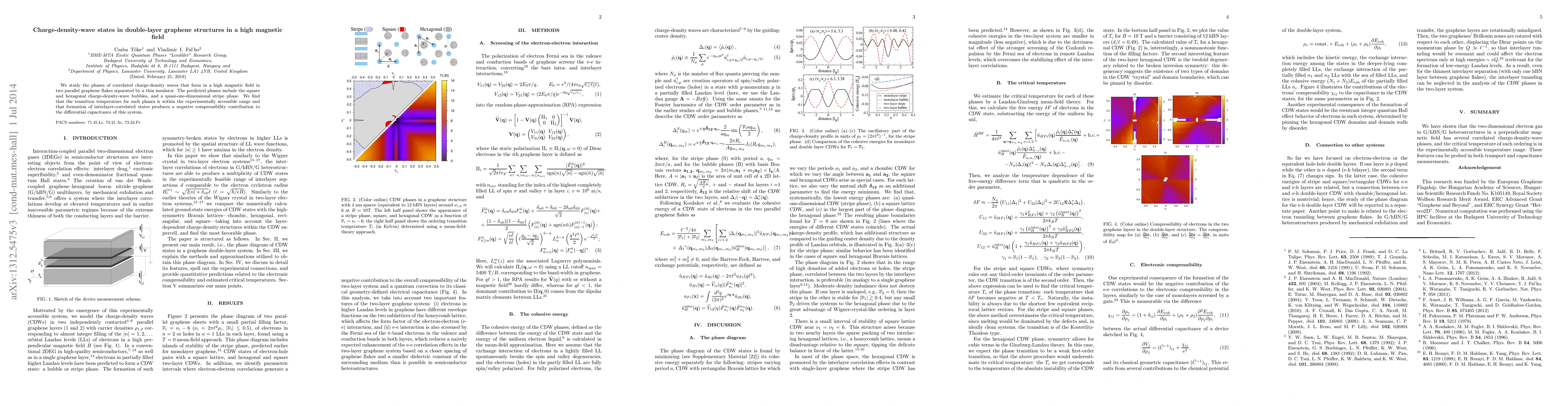 Researchers studied charge-density waves in double-layer graphene under high magnetic field conditions, predicting several phases including square, hexagonal, and stripe patterns.