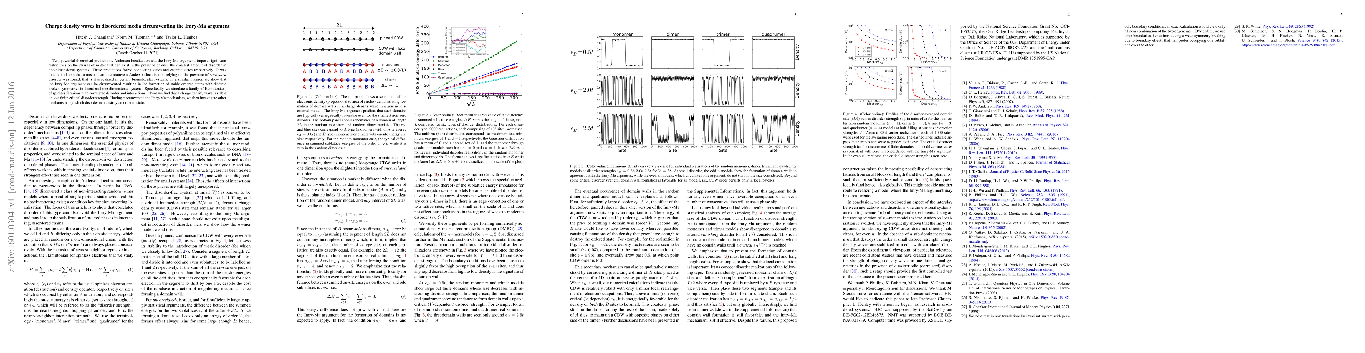 Two powerful theoretical predictions, Anderson localization and the Imry-Ma argument, impose significant restrictions on the phases of matter that can exist in the presence of even the smallest amount of disorder in one-dimensional systems. These predictions forbid conducting states and ordered states respectively. It was thus remarkable that a mechanism to circumvent Anderson localization relying on the presence of correlated disorder was found, that is also realized in certain biomolecular systems. In a similar manner, we show that the Imry-Ma argument can be circumvented resulting in the formation of stable ordered states with discrete broken symmetries in disordered one dimensional systems. Specifically, we simulate a family of Hamiltonians of spinless fermions with correlated disorder and interactions, where we find that a charge density wave is stable up to a finite critical disorder strength. Having circumvented the Imry-Ma mechanism, we then investigate other mechanisms by which disorder can destroy an ordered state.