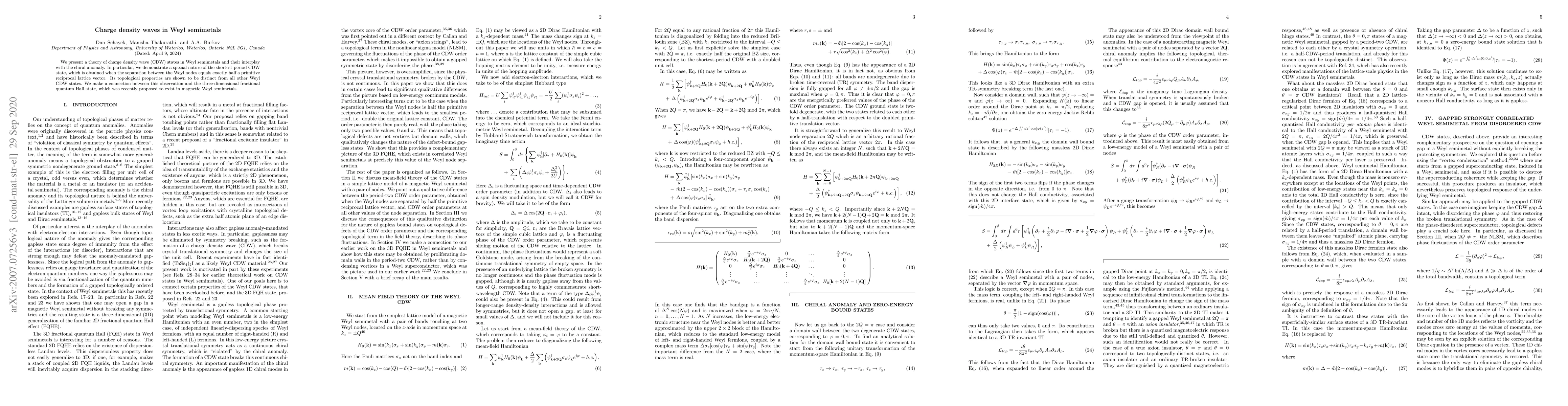 The paper presents a theoretical analysis of charge density wave (CDW) states in Weyl semimetals, focusing on their interplay with the chiral anomaly.