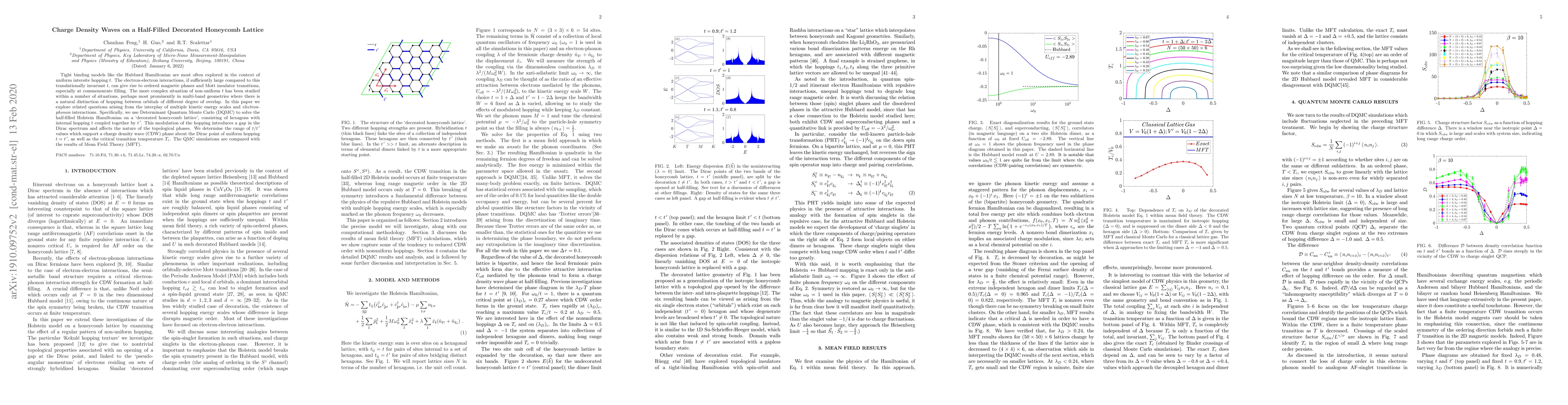 Tight binding models like the Hubbard Hamiltonian are most often explored in the context of uniform intersite hopping $t$. The electron-electron interactions, if sufficiently large compared to this translationally invariant $t$, can give rise to ordered magnetic phases and Mott insulator transitions, especially at commensurate filling. The more complex situation of non-uniform $t$ has been studied within a number of situations, perhaps most prominently in multi-band geometries where there is a natural distinction of hopping between orbitals of different degree of overlap. In this paper we explore related questions arising from the interplay of multiple kinetic energy scales and electron-phonon interactions. Specifically, we use Determinant Quantum Monte Carlo (DQMC) to solve the half-filled Holstein Hamiltonian on a `decorated honeycomb lattice', consisting of hexagons with internal hopping $t$ coupled together by $t^{\,\prime}$. This modulation of the hopping introduces a gap in the Dirac spectrum and affects the nature of the topological phases. We determine the range of $t/t^{\,\prime}$ values which support a charge density wave (CDW) phase about the Dirac point of uniform hopping $t=t^{\,\prime}$, as well as the critical transition temperature $T_c$. The QMC simulations are compared with the results of Mean Field Theory (MFT).