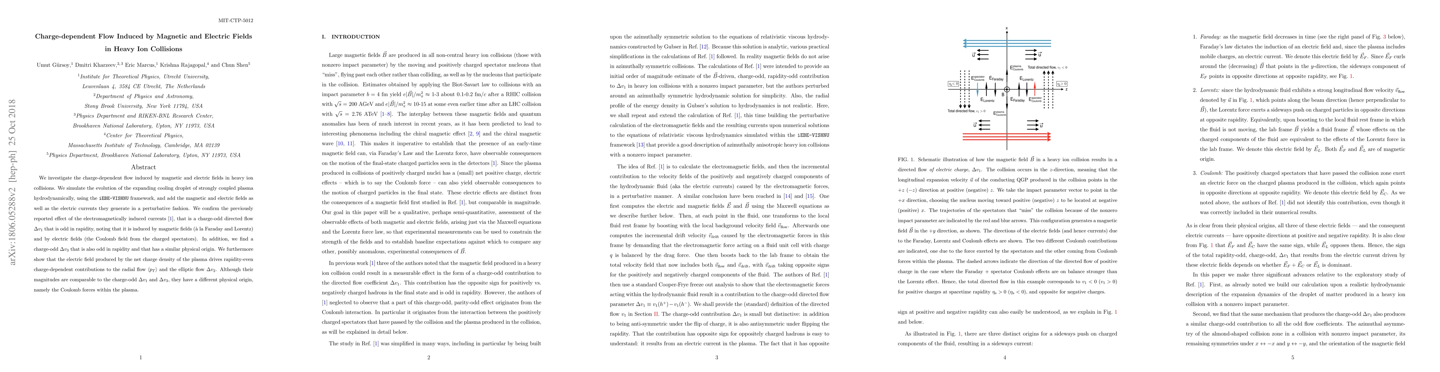 We investigate the charge-dependent flow induced by magnetic and electric fields in heavy ion collisions. We simulate the evolution of the expanding cooling droplet of strongly coupled plasma hydrodynamically, using the iEBE-VISHNU framework, and add the magnetic and electric fields as well as the electric currents they generate in a perturbative fashion. We confirm the previously reported effect of the electromagnetically induced currents, that is a charge-odd directed flow $\Delta v_1$ that is odd in rapidity, noting that it is induced by magnetic fields (\`a la Faraday and Lorentz) and by electric fields (the Coulomb field from the charged spectators). In addition, we find a charge-odd $\Delta v_3$ that is also odd in rapidity and that has a similar physical origin. We furthermore show that the electric field produced by the net charge density of the plasma drives rapidity-even charge-dependent contributions to the radial flow $\langle p_T \rangle$ and the elliptic flow $\Delta v_2$. Although their magnitudes are comparable to the charge-odd $\Delta v_1$ and $\Delta v_3$, they have a different physical origin, namely the Coulomb forces within the plasma.