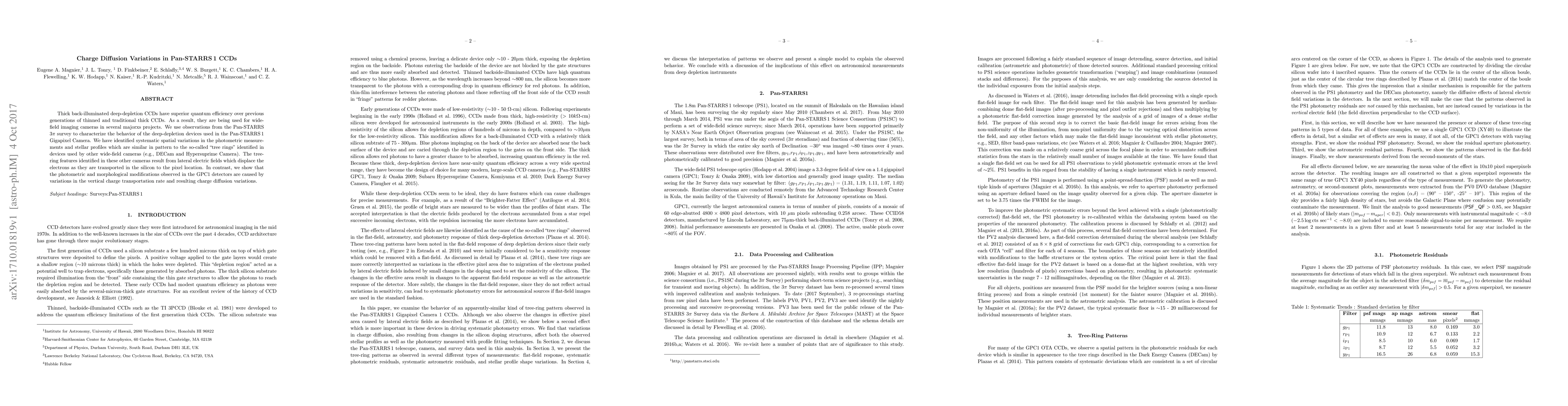 Thick back-illuminated deep-depletion CCDs have superior quantum efficiency over previous generations of thinned and traditional thick CCDs. As a result, they are being used for wide-field imaging cameras in several major projects. We use observations from the Pan-STARRS $3\pi$ survey to characterize the behavior of the deep-depletion devices used in the Pan-STARRS1 Gigapixel Camera. We have identified systematic spatial variations in the photometric measurements and stellar profiles which are similar in pattern to the so-called "tree rings" identified in devices used by other wide-field cameras (e.g., DECam and Hypersuprime Camera). The tree-ring features identified in these other cameras result from lateral electric fields which displace the electrons as they are transported in the silicon to the pixel location. In contrast, we show that the photometric and morphological modifications observed in the GPC1 detectors are caused by variations in the vertical charge transportation rate and resulting charge diffusion variations.