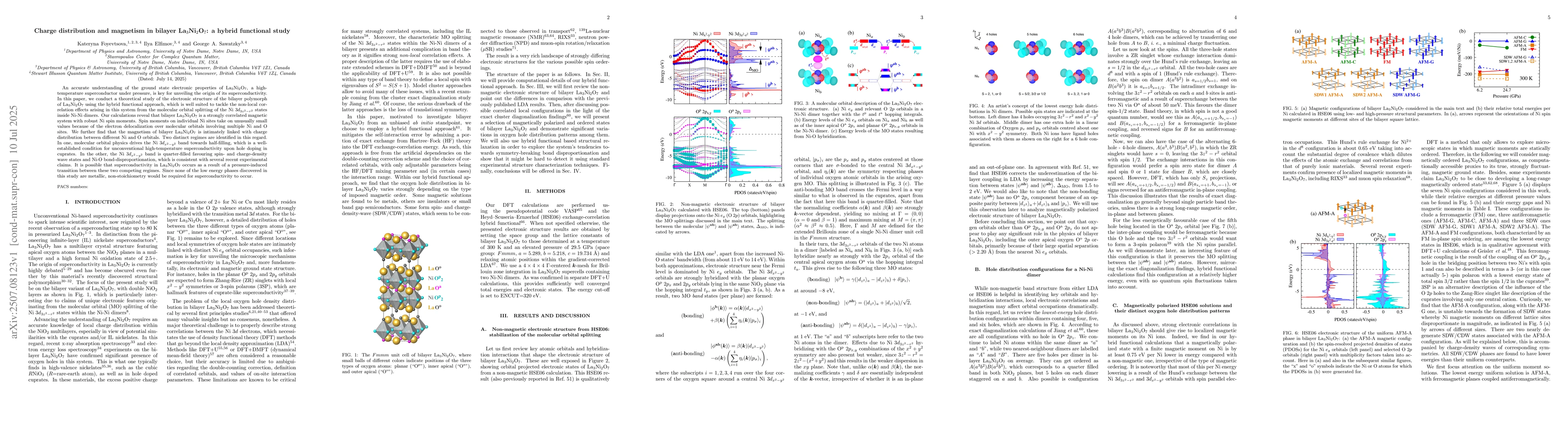 An accurate understanding of the ground state electronic properties of La$_3$Ni$_2$O$_7$, a high-temperature superconductor under pressure, is key for unveiling the origin of its superconductivity. In this paper, we conduct a theoretical study of the electronic structure of the bilayer polymorph of La$_3$Ni$_2$O$_7$ using the hybrid functional approach, which is well suited to tackle the non-local correlation effects arising in this system from the molecular orbital splitting of the Ni $3d_{3z^2-r^2}$ states inside Ni-Ni dimers. Our calculations reveal that bilayer La$_3$Ni$_2$O$_7$ is a strongly correlated magnetic system with robust Ni spin moments. Spin moments on individual Ni sites take on unusually small values because of the electron delocalization over molecular orbitals involving multiple Ni and O sites. We further find that the magnetism of bilayer La$_3$Ni$_2$O$_7$ is intimately linked with charge distribution between different Ni and O orbitals. Two distinct regimes are identified in this regard. In one, molecular orbital physics drives the Ni $3d_{x^2-y^2}$ band towards half-filling, which is a well-established condition for unconventional high-temperature superconductivity upon hole doping in cuprates. In the other, the Ni $3d_{x^2-y^2}$ band is quarter-filled favouring spin- and charge-density wave states and Ni-O bond-disproportionation, which is consistent with several recent experimental claims. It is possible that superconductivity in La$_3$Ni$_2$O$_7$ occurs as a result of a pressure-induced transition between these two competing regimes. Since none of the low energy phases discovered in this study are metallic, non-stoichiometry would be required for superconductivity to occur.