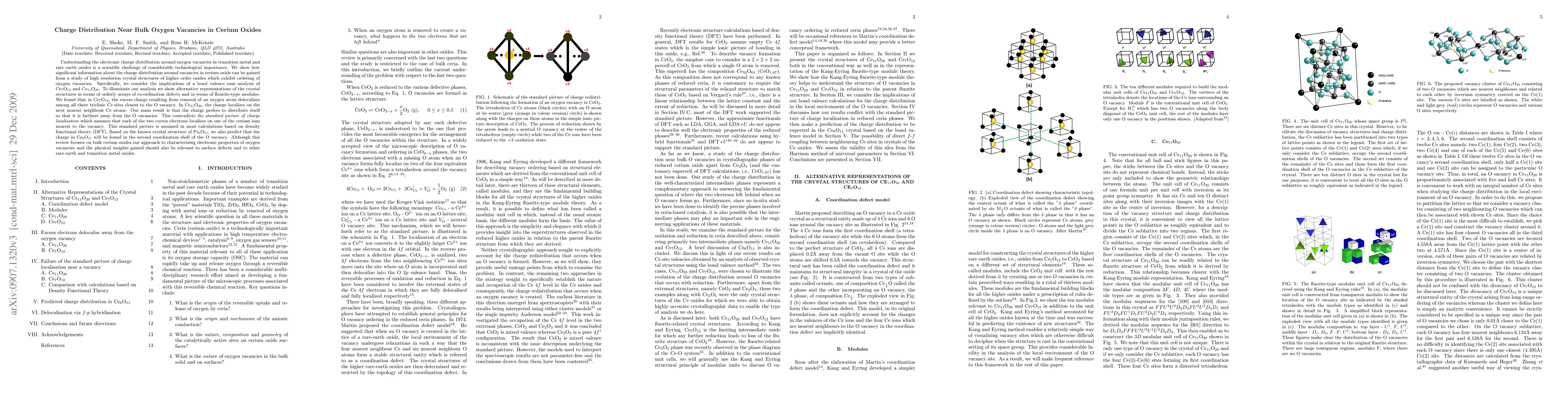 Understanding the electronic charge distribution around oxygen vacancies in transition metal and rare earth oxides is a scientific challenge of considerable technological importance. We show how significant information about the charge distribution around vacancies in cerium oxide can be gained from a study of high resolution crystal structures of higher order oxides which exhibit ordering of oxygen vacancies. Specifically, we consider the implications of a bond valence sum analysis of Ce$_{7}$O$_{12}$ and Ce$_{11}$O$_{20}$. To illuminate our analysis we show alternative representations of the crystal structures in terms of orderly arrays of co-ordination defects and in terms of flourite-type modules. We found that in Ce$_{7}$O$_{12}$, the excess charge resulting from removal of an oxygen atom delocalizes among all three triclinic Ce sites closest to the O vacancy. In Ce$_{11}$O$_{20}$, the charge localizes on the next nearest neighbour Ce atoms. Our main result is that the charge prefers to distribute itself so that it is farthest away from the O vacancies. This contradicts \emph{the standard picture of charge localisation} which assumes that each of the two excess electrons localises on one of the cerium ions nearest to the vacancy. This standard picture is assumed in most calculations based on density functional theory (DFT). Based on the known crystal structure of Pr$_{6}$O$_{11}$, we also predict that the charge in Ce$_{6}$O$_{11}$ will be found in the second coordination shell of the O vacancy. Although this review focuses on bulk cerium oxides our approach to characterising electronic properties of oxygen vacancies and the physical insights gained should also be relevant to surface defects and to other rare earth and transition metal oxides.