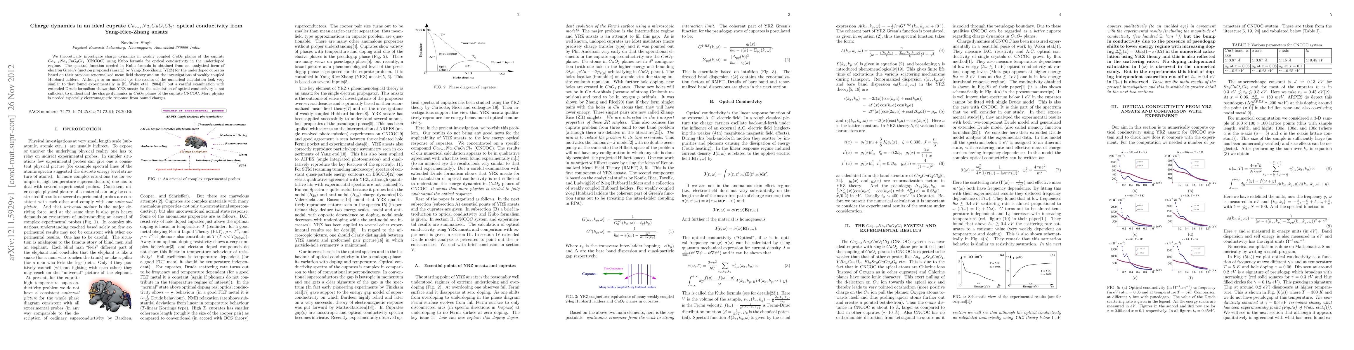 We theoretically investigate charge dynamics in weakly coupled $CuO_2$ planes of the cuprate $Ca_{2-x} Na_x Cu O_2 Cl_2$ (CNCOC) using Kubo formula for optical conductivity in the underdoped regime. The spectral function needed in Kubo formula is obtained from an analytical form of electron Green's function proposed (ansatz) by Yang-Rice-Zhang (YRZ) for the underdoped cuprates based on their previous renormalized mean field theory and on the investigations of weakly coupled Hubbard ladders. Although to an unaided eye the results of the numerical calculation look very similar to that found experimentally in [K. Waku etal. 2004] but a careful examination with extended Drude formalism shows that YRZ ansatz for the calculation of optical conductivity is not sufficient to understand the charge dynamics in $CuO_2$ planes of the cuprate CNCOC. More physics is needed especially electromagnetic response from bound charges.