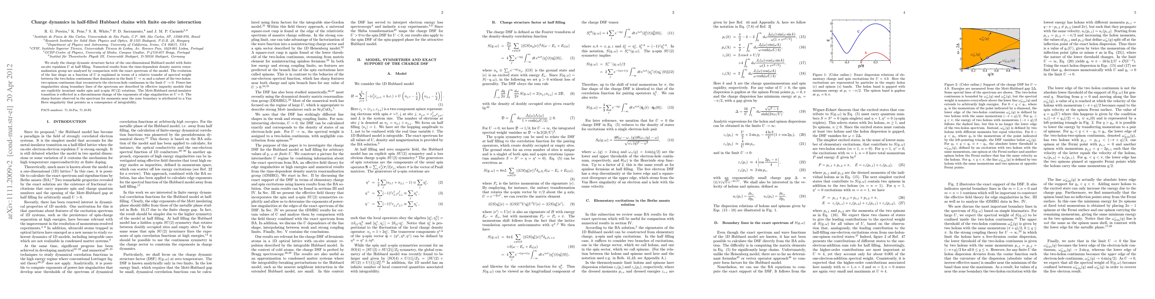 This study uses time-dependent density matrix renormalization group to analyze charge dynamics in half-filled Hubbard chains with finite on-site repulsion. Key findings include a transfer of spectral weight with varying U, description of power-law singularities via effective impurity models, and evidence of a Mott-Hubbard metal-insulator transition and a persistent Van Hove singularity.