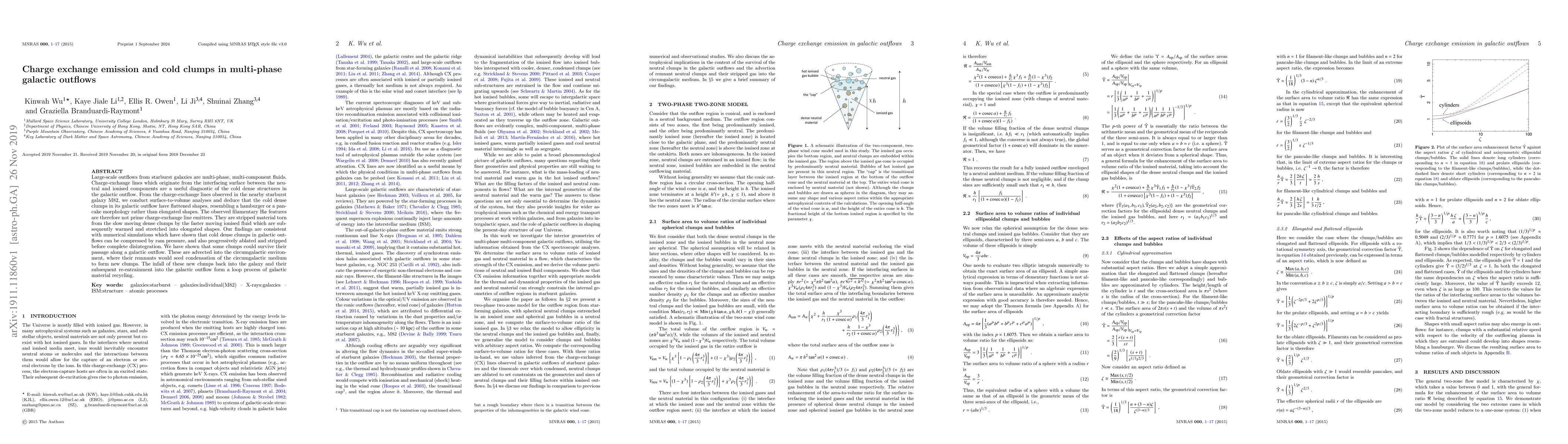 The study analyzes charge-exchange emissions in starburst galaxy M82's outflows, revealing that cold dense clumps have flattened shapes resembling hamburgers or pancakes, not elongated ones. These clumps survive and get recycled, seeding new clump formation in the circumgalactic medium and re-entering the outflow in a loop process.