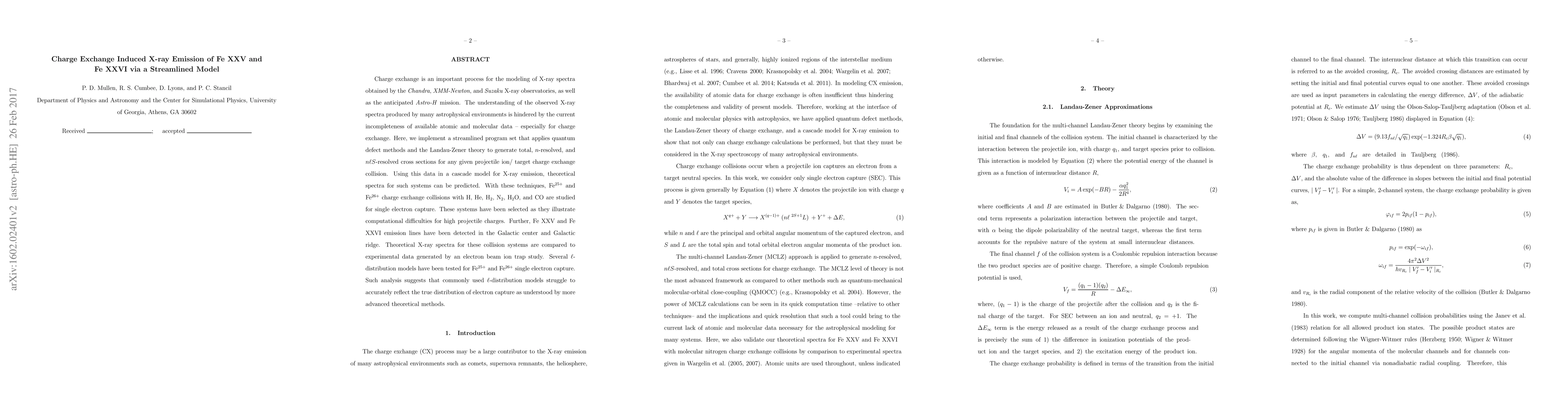 Researchers developed a streamlined model to predict X-ray spectra from charge exchange collisions between high-charge ions like Fe XXV and XXVI and various targets, improving understanding of astrophysical environments.