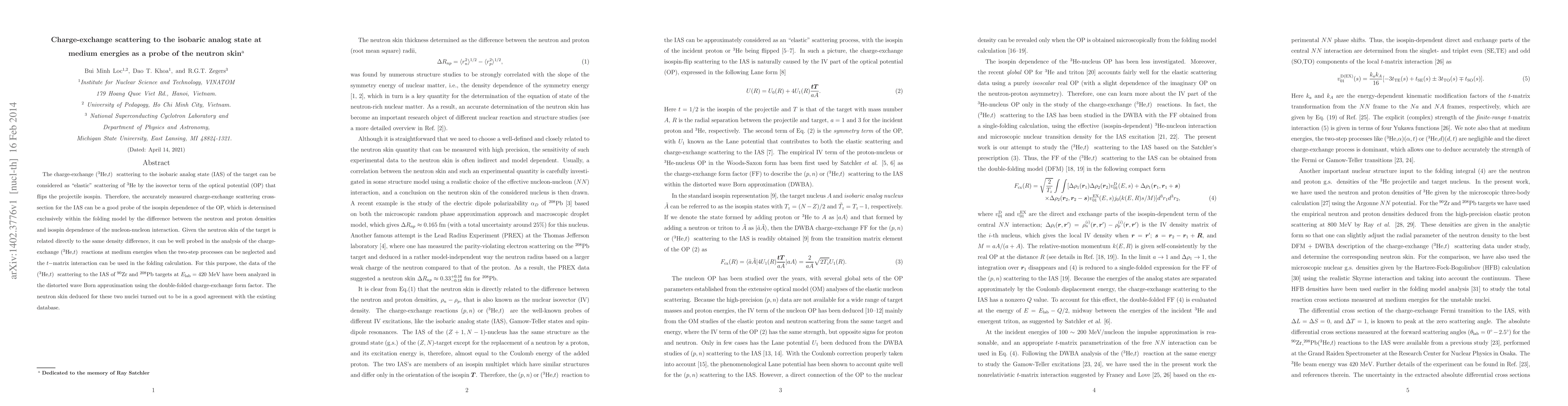 This paper investigates the charge-exchange (3He,t) scattering to the isobaric analog state (IAS) as a method to probe the neutron skin thickness in medium-heavy nuclei. The analysis of (3He,t) scattering cross-sections at medium energies provides insights into the isospin dependence of the optical potential, directly related to the neutron skin thickness.