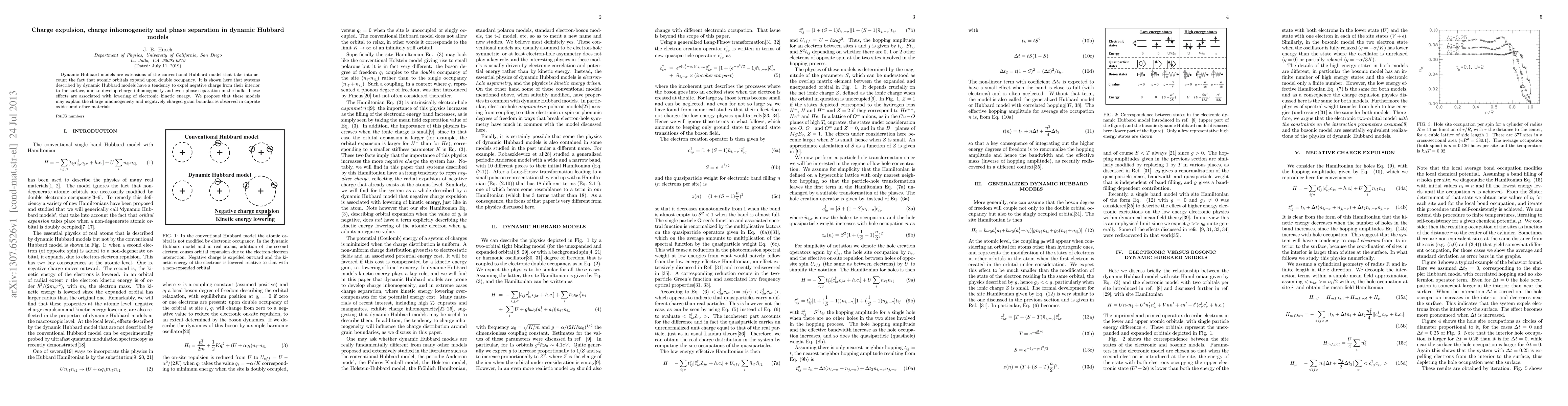 Dynamic Hubbard models exhibit charge expulsion to surfaces, leading to charge inhomogeneity and phase separation in the bulk, driven by reduced electronic kinetic energy. These models may elucidate the observed charge inhomogeneity and negatively charged grain boundaries in cuprate oxides and other materials.