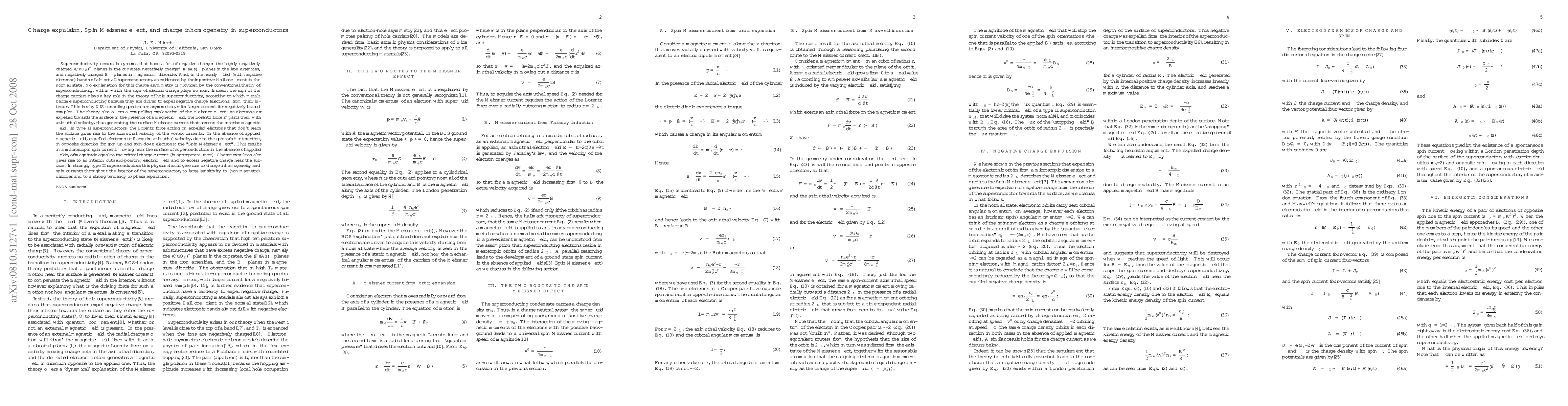 This paper explores the mechanisms behind charge expulsion, the Spin Meissner effect, and the resulting charge inhomogeneity in superconductors, emphasizing the role of negative charge expulsion in the superconducting state and the generation of spin currents due to spin-orbit interaction.