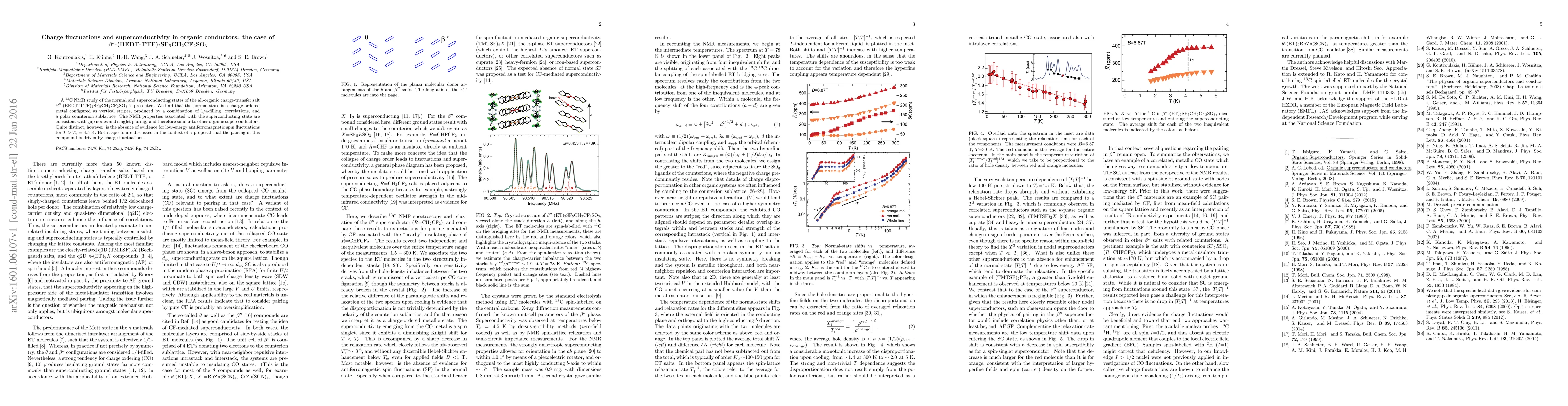 A $^{13}$C NMR study of the normal and superconducting states of the all-organic charge-transfer salt $\beta"$-(BEDT-TTF)$_2$SF$_5$CH$_2$CF$_2$SO$_3$ is presented. We find that the normal state is a charge-ordered metal configured as vertical stripes, produced by a combination of 1/4-filling, correlations, and a polar counterion sublattice. The NMR properties associated with the superconducting state are consistent with gap nodes and singlet pairing, and therefore similar to other organic superconductors. Quite distinct, however, is the absence of evidence for low-energy antiferromagnetic spin fluctuations for $T>T_c=4.5$ K. Both aspects are discussed in the context of a proposal that the pairing in this compound is driven by charge fluctuations.