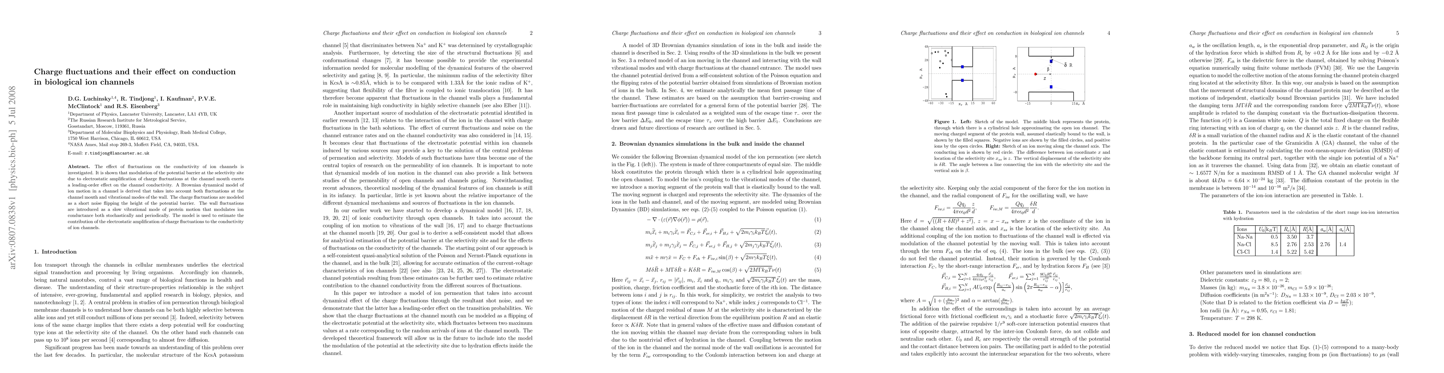 This paper investigates how charge fluctuations influence the conductivity of ion channels, demonstrating that electrostatic amplification of these fluctuations at the channel mouth significantly modulates the potential barrier. A Brownian dynamical model is developed to account for both charge fluctuations and protein wall vibrations, estimating the impact of these factors on ion channel conductivity.