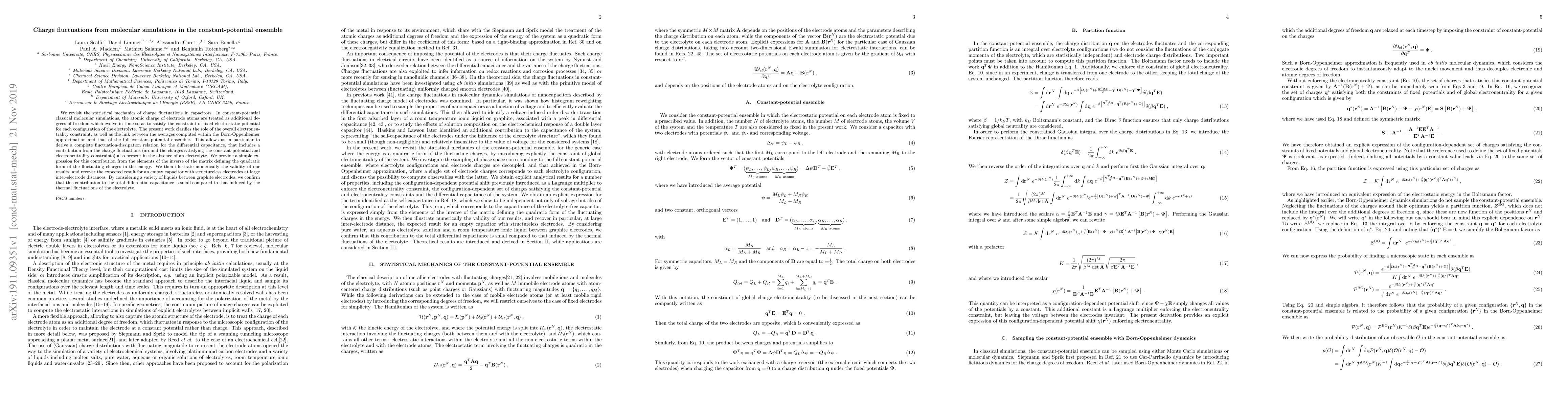 We revisit the statistical mechanics of charge fluctuations in capacitors. In constant-potential classical molecular simulations, the atomic charge of electrode atoms are treated as additional degrees of freedom which evolve in time so as to satisfy the constraint of fixed electrostatic potential for each configuration of the electrolyte. The present work clarifies the role of the overall electroneutrality constraint, as well as the link between the averages computed within the Born-Oppenheimer approximation and that of the full constant-potential ensemble. This allows us in particular to derive a complete fluctuation-dissipation relation for the differential capacitance, that includes a contribution from the charge fluctuations (around the charges satisfying the constant-potential and electroneutrality constraints) also present in the absence of an electrolyte. We provide a simple expression for this contribution from the elements of the inverse of the matrix defining the quadratic form of the fluctuating charges in the energy. We then illustrate numerically the validity of our results, and recover the expected result for an empty capacitor with structureless electrodes at large inter-electrode distances. By considering a variety of liquids between graphite electrodes, we confirm that this contribution to the total differential capacitance is small compared to that induced by the thermal fluctuations of the electrolyte.