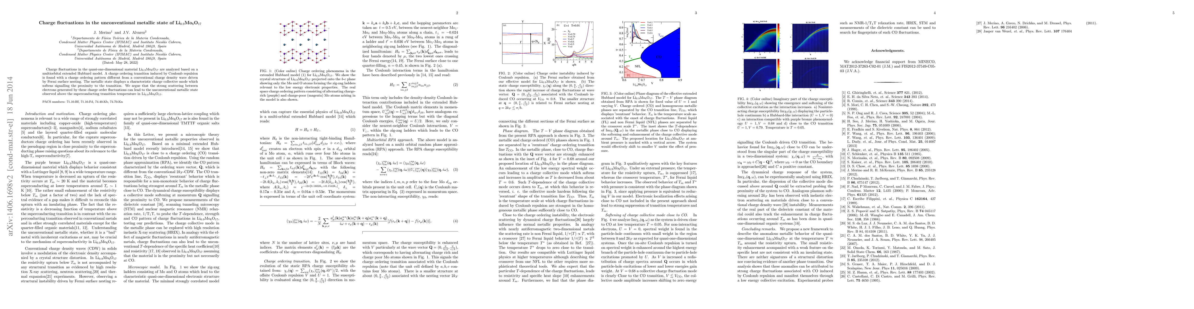 The research investigates charge fluctuations in Li0.9Mo6O17, revealing a charge ordering transition driven by Coulomb repulsion rather than Fermi surface nesting. The metallic state exhibits a softening charge collective mode, suggesting strong electron scattering due to these fluctuations, which underpins the unconventional metallic behavior above the superconducting transition.