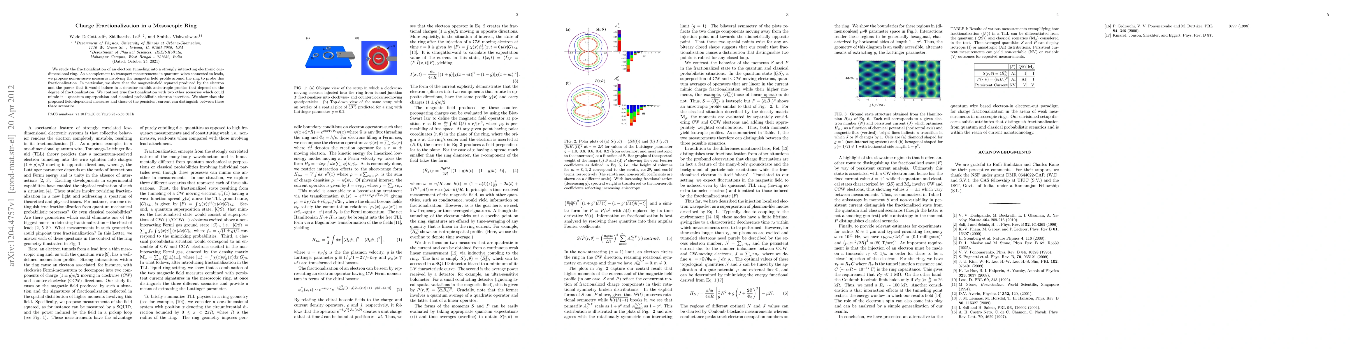 This paper investigates the electron tunneling into a strongly interacting one-dimensional ring, proposing non-invasive magnetic field profile measures to detect charge fractionalization. It distinguishes true fractionalization from quantum superposition and classical probabilistic insertion through anisotropic magnetic-field squared and induced power profiles.