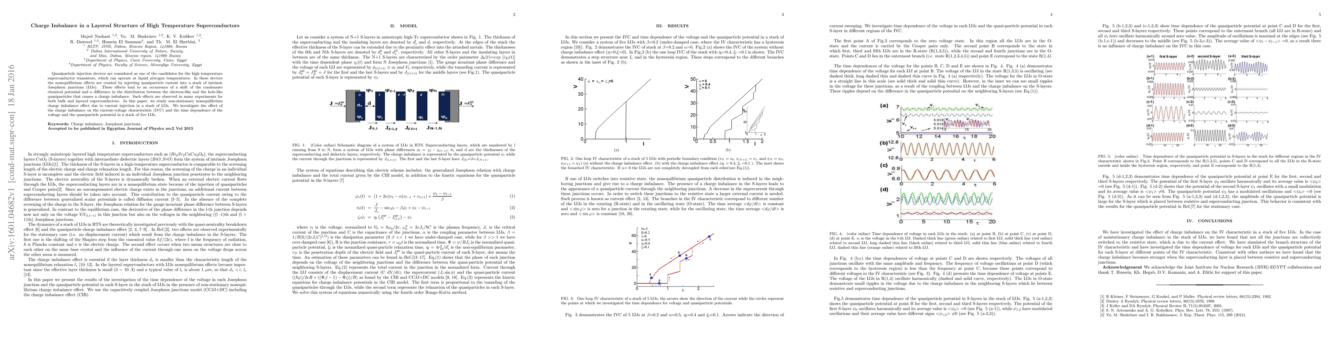 This research investigates non-stationary charge imbalance effects caused by quasiparticle current injection in a stack of intrinsic Josephson junctions (IJJs) in high-temperature superconductors. The study examines the impact on current-voltage characteristics and temporal voltage and quasiparticle potential changes.