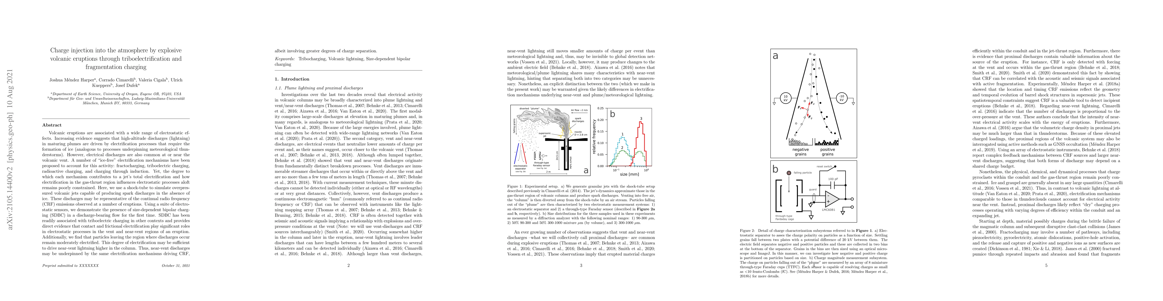 This study investigates the electrification processes in volcanic eruptions, demonstrating that triboelectric charging and fragmentation charging significantly contribute to the electrostatic activity near the vent. The research shows that particles leaving the vent region remain moderately electrified, potentially influencing higher column discharges.