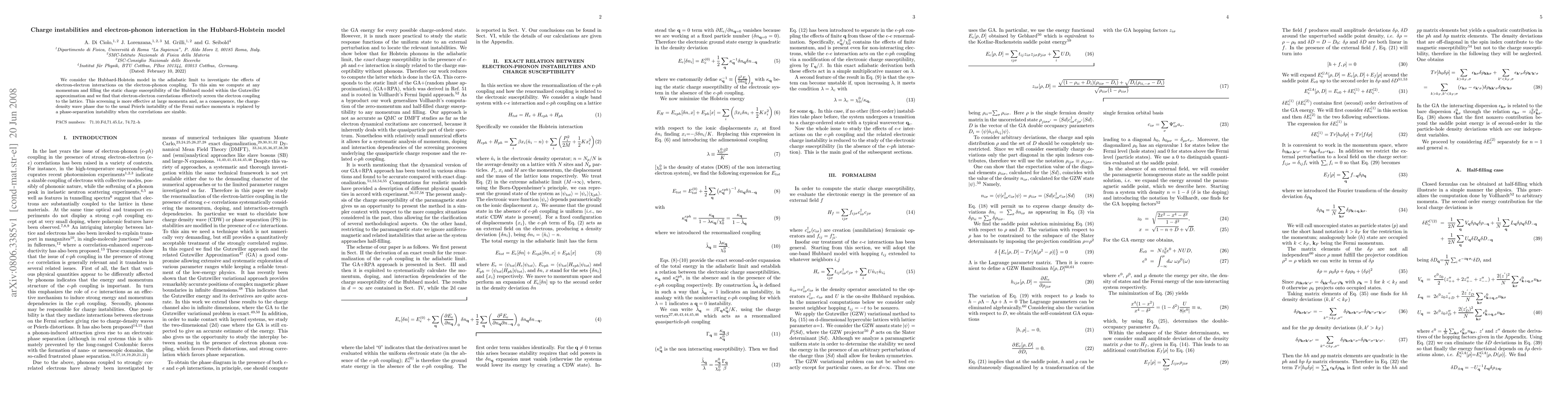 **Summary:** The study investigates charge instabilities in the Hubbard-Holstein model, revealing that electron-electron interactions screen electron-phonon coupling, particularly at large momenta, leading to phase-separation instability instead of charge-density wave formation.